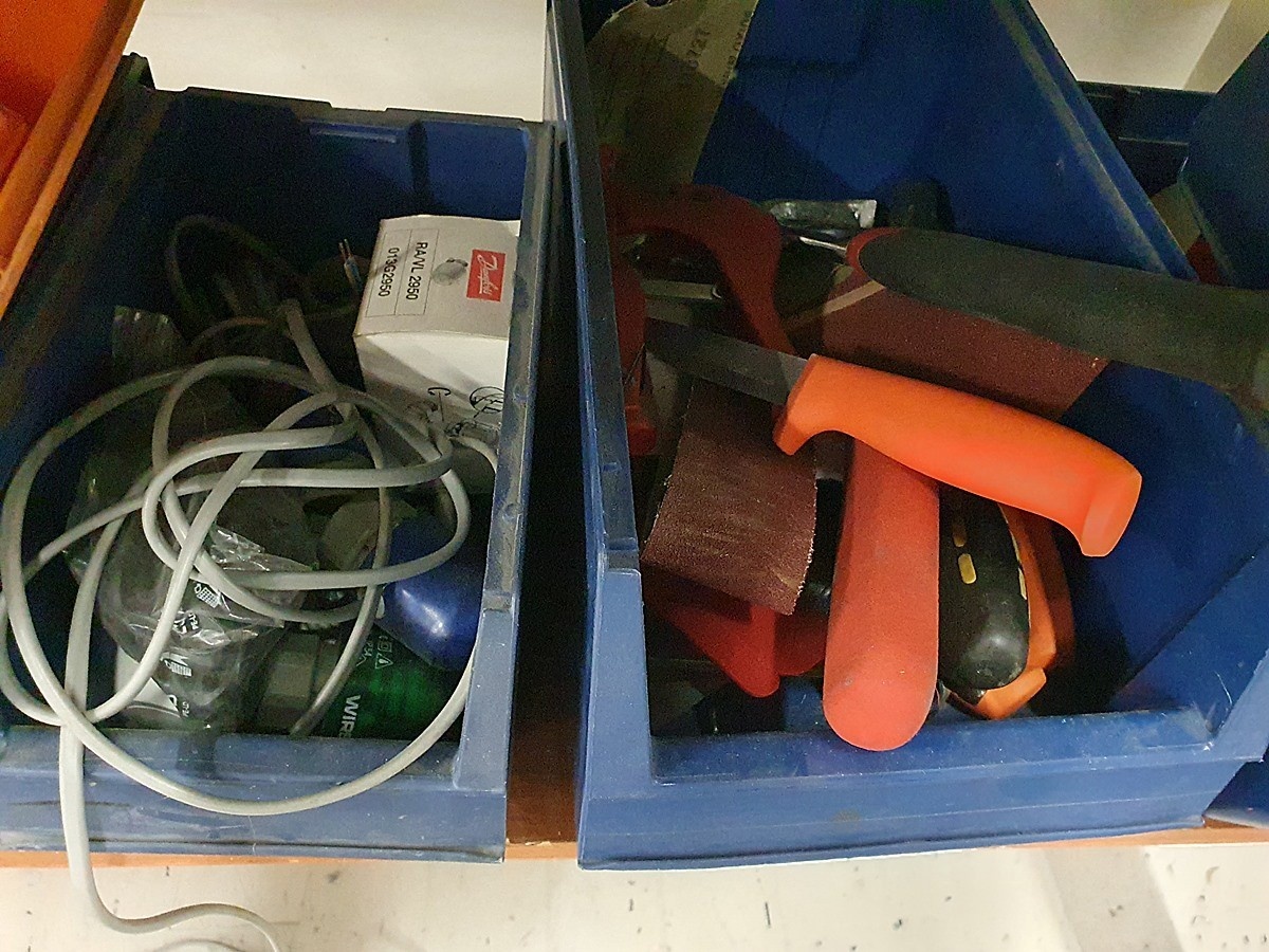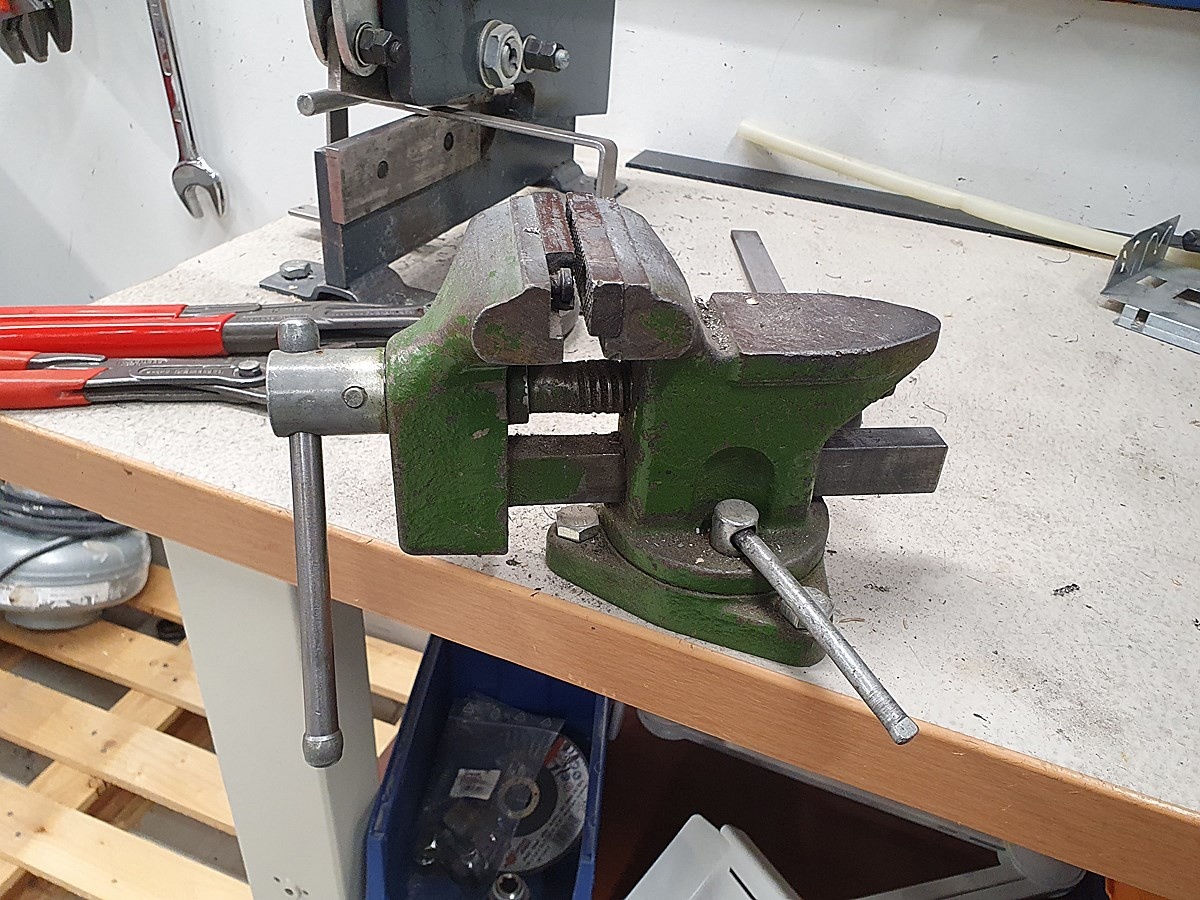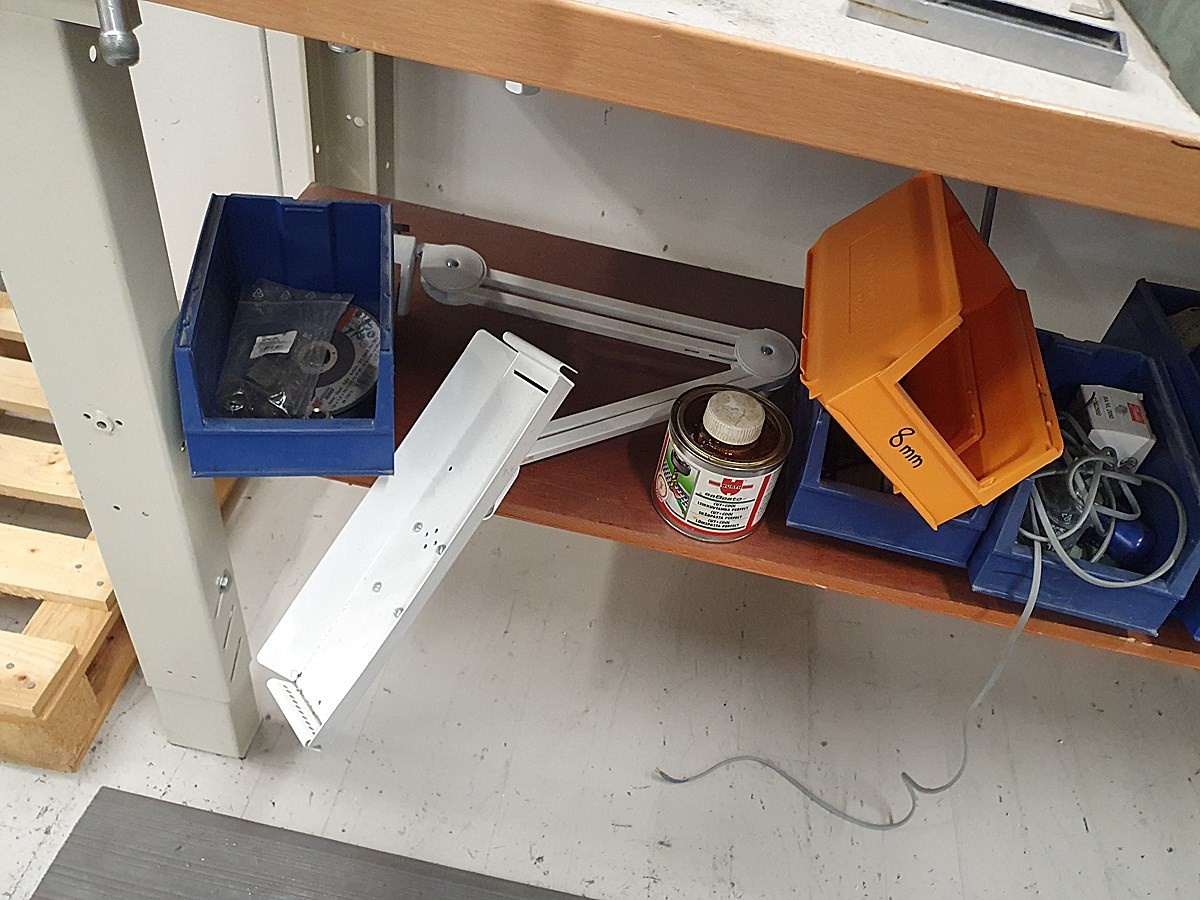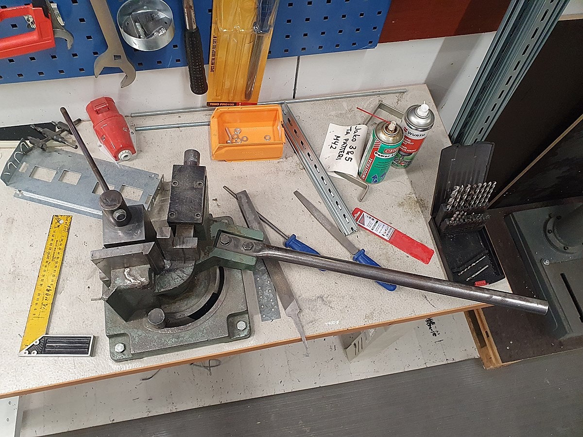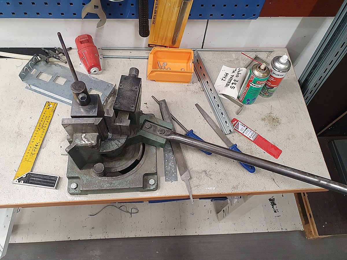 Myyntikohteet » 4. Jakotec Oy:n konkurssipesä (2031649-1), ÄÄNEKOSKI, 08.11.2025 » 60. Työpöytä, työkaluseinä tavaroineen, peltileikkuri, raudantaivutin