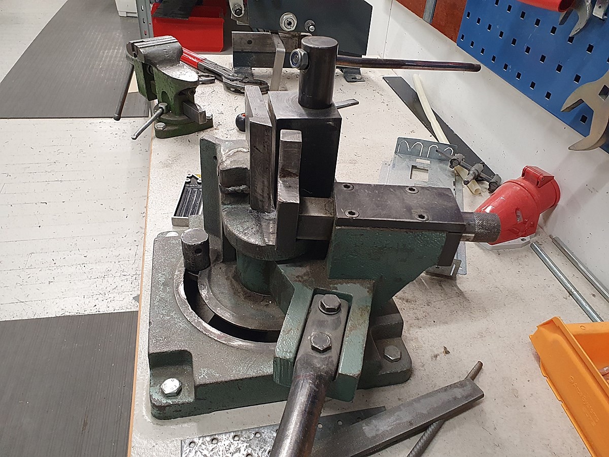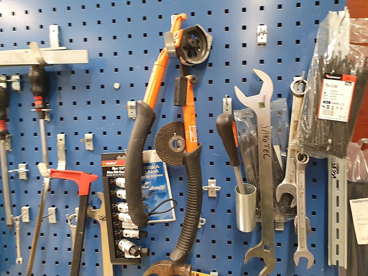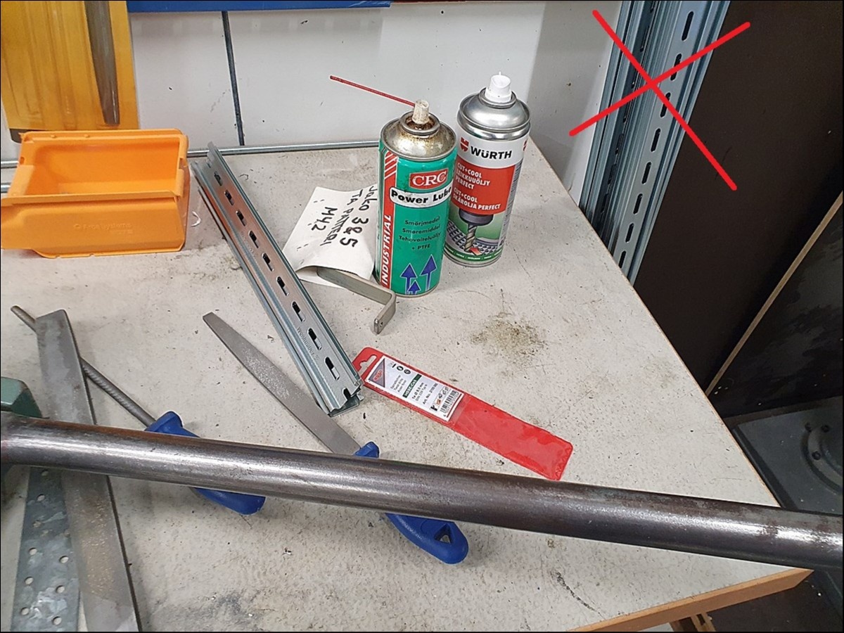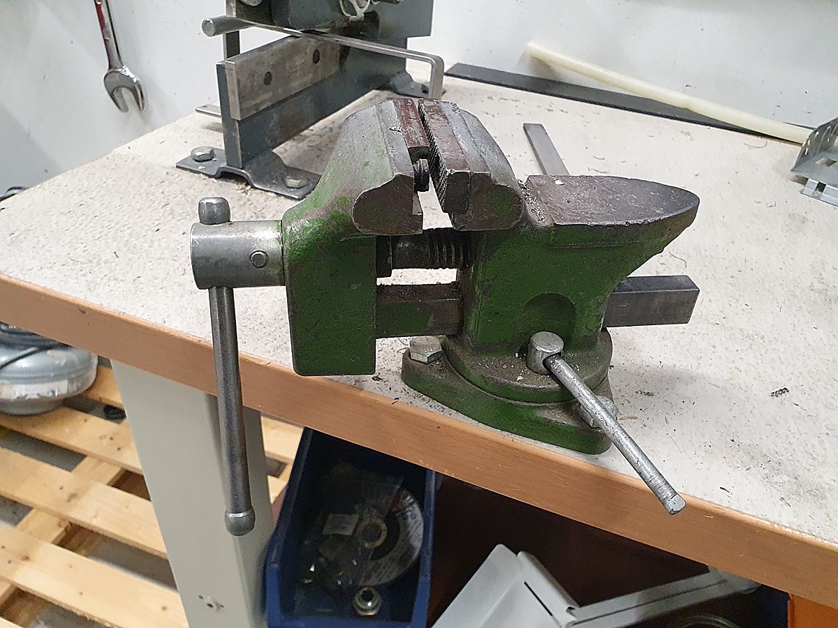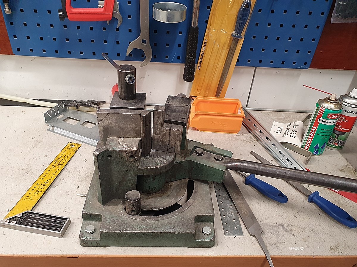 Myyntikohteet » 4. Jakotec Oy:n konkurssipesä (2031649-1), ÄÄNEKOSKI, 08.11.2025 » 60. Työpöytä, työkaluseinä tavaroineen, peltileikkuri, raudantaivutin