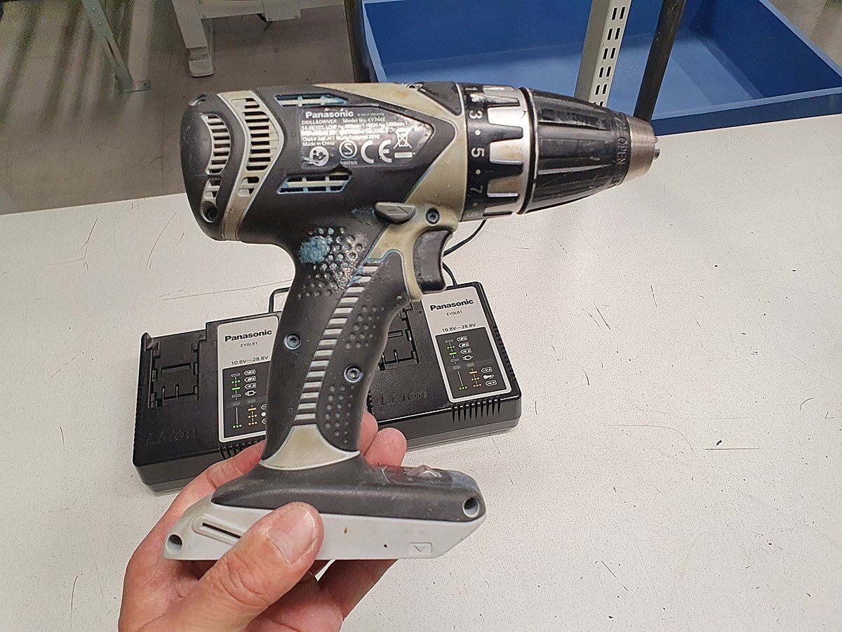 Myyntikohteet » 5. Jakotec Oy:n konkurssipesä (2031649-1), ÄÄNEKOSKI, 08.11.2025 » 66. Akkuporakone Panasonic EY7441 (2 kappaletta) + akku (3 kappaletta) + laturi (2 kappaletta)