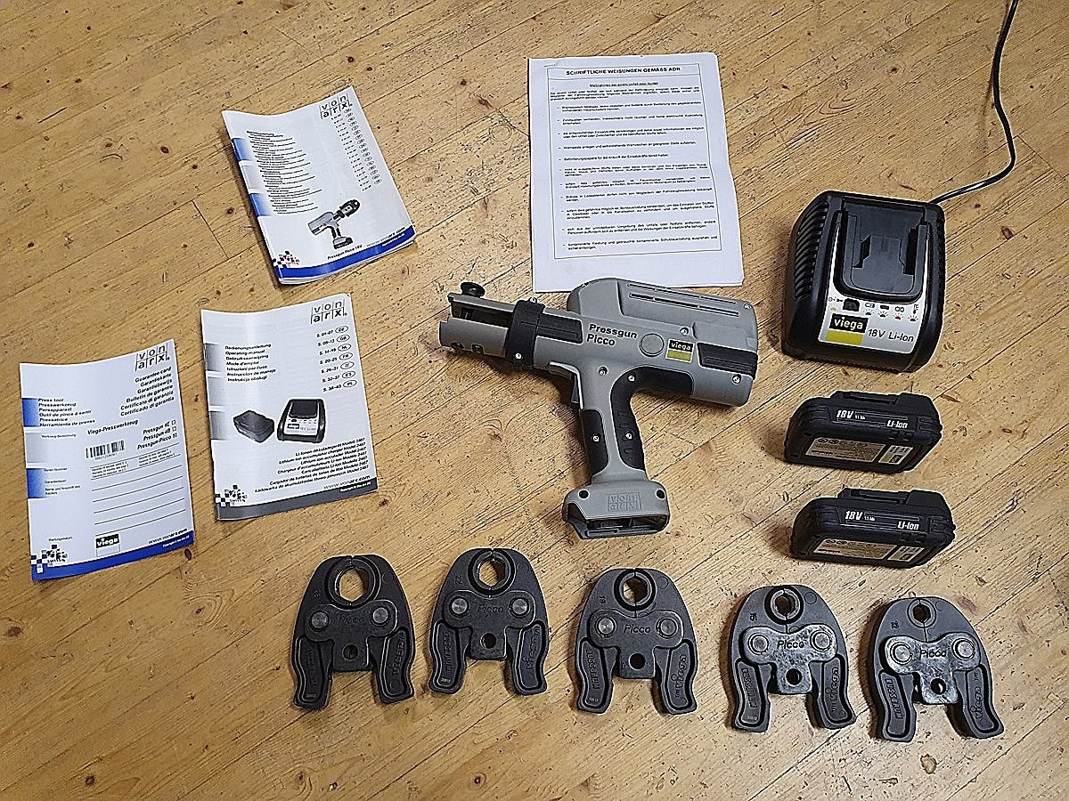 Myyntikohteet » 6. Jakotec Oy:n konkurssipesä (2031649-1), ÄÄNEKOSKI, 08.11.2025 » 083. Puristuskone Viega Pressgun Picco + leukasarja