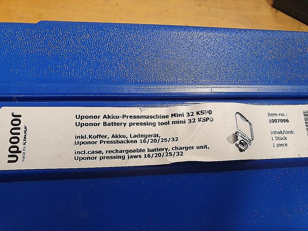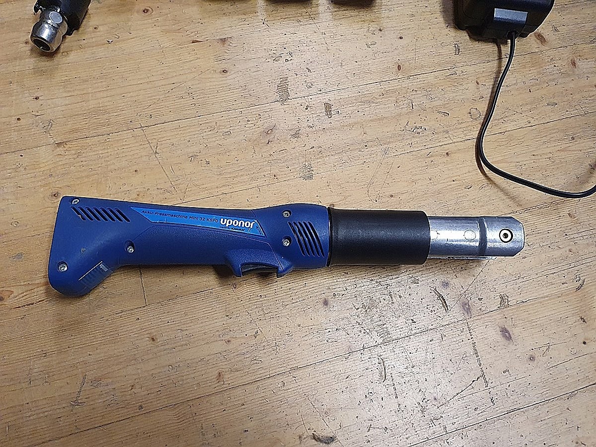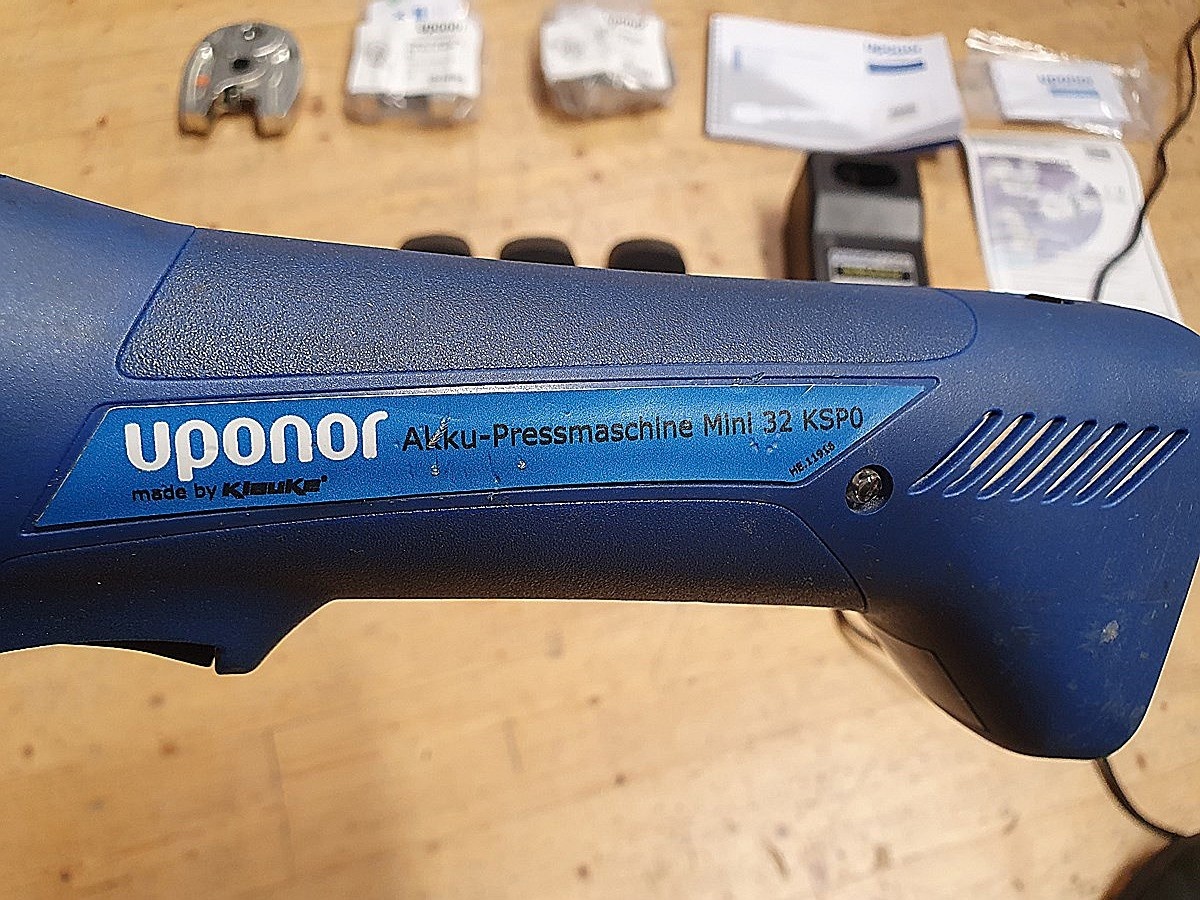 Myyntikohteet » 6. Jakotec Oy:n konkurssipesä (2031649-1), ÄÄNEKOSKI, 08.11.2025 » 086. Puristuskone Uponor Unipipe Mini 32 KSPO (Klauke), viallinen + leukasarja