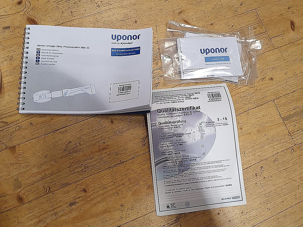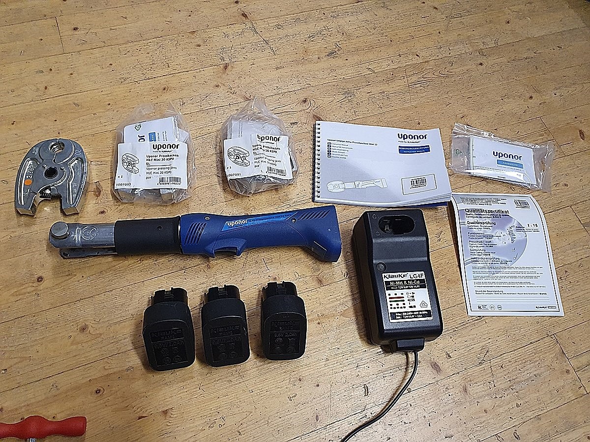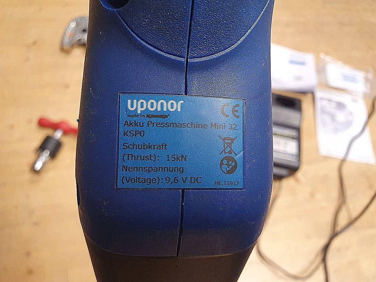 Myyntikohteet » 6. Jakotec Oy:n konkurssipesä (2031649-1), ÄÄNEKOSKI, 08.11.2025 » 086. Puristuskone Uponor Unipipe Mini 32 KSPO (Klauke), viallinen + leukasarja