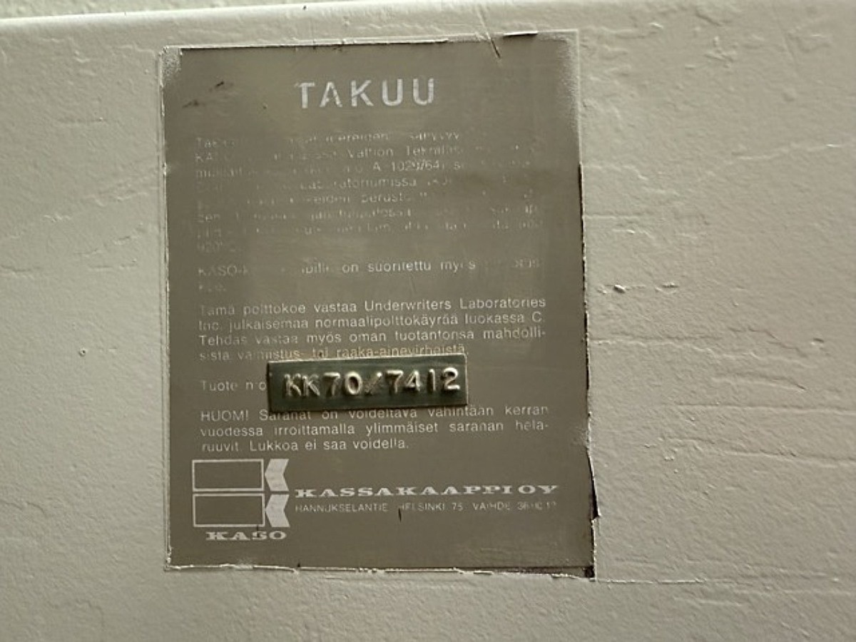 Myyntikohteet » 7. Jakotec Oy:n konkurssipesä (2031649-1), ÄÄNEKOSKI, 08.11.2025 » 112. Kassakaappi Kaso