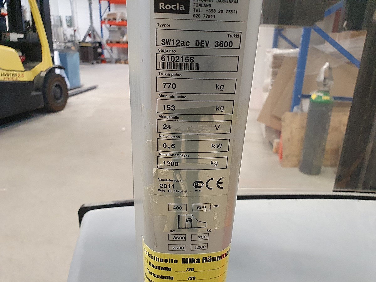 Myyntikohteet » 8. Jakotec Oy:n konkurssipesä (2031649-1), ÄÄNEKOSKI, 08.11.2025 » 131. Pinoamistrukki Rocla SW12ac DEV 3600, vm. 2011