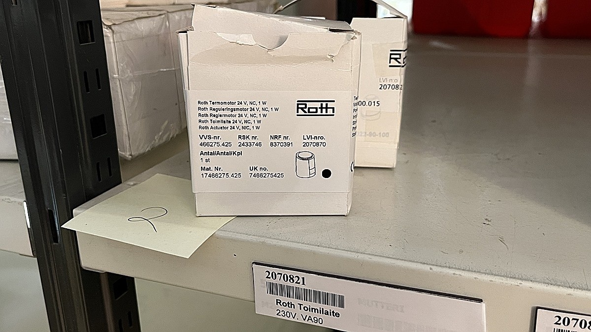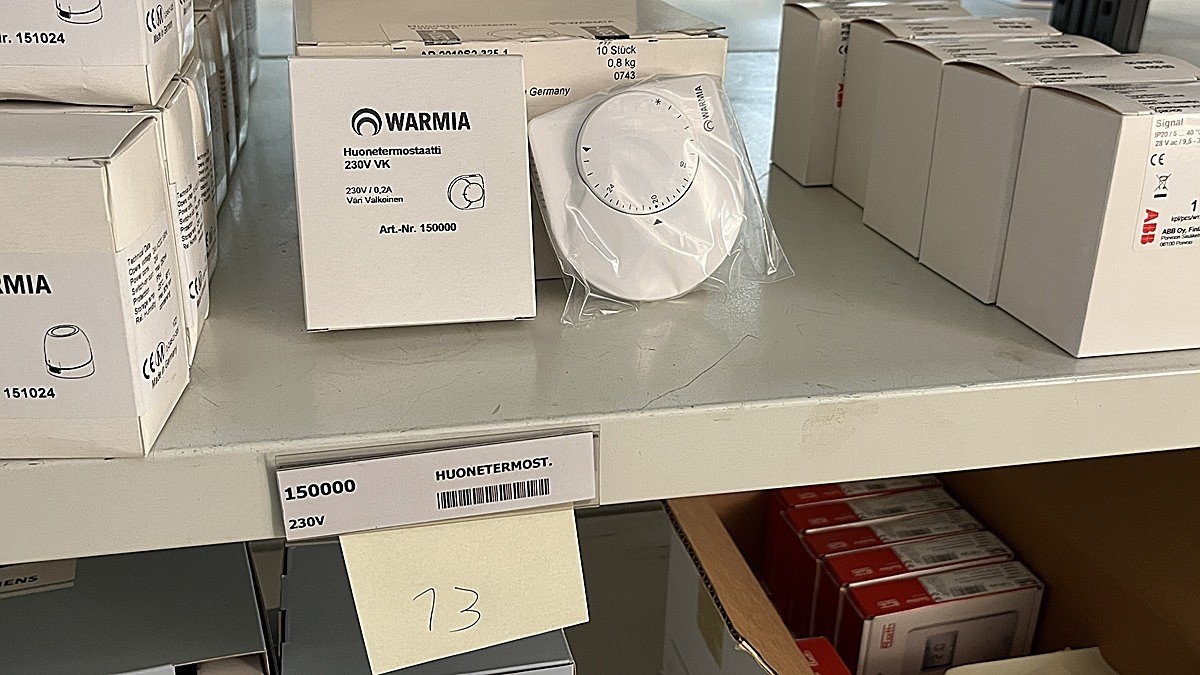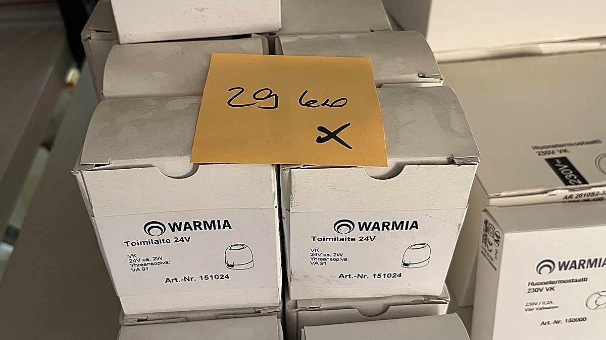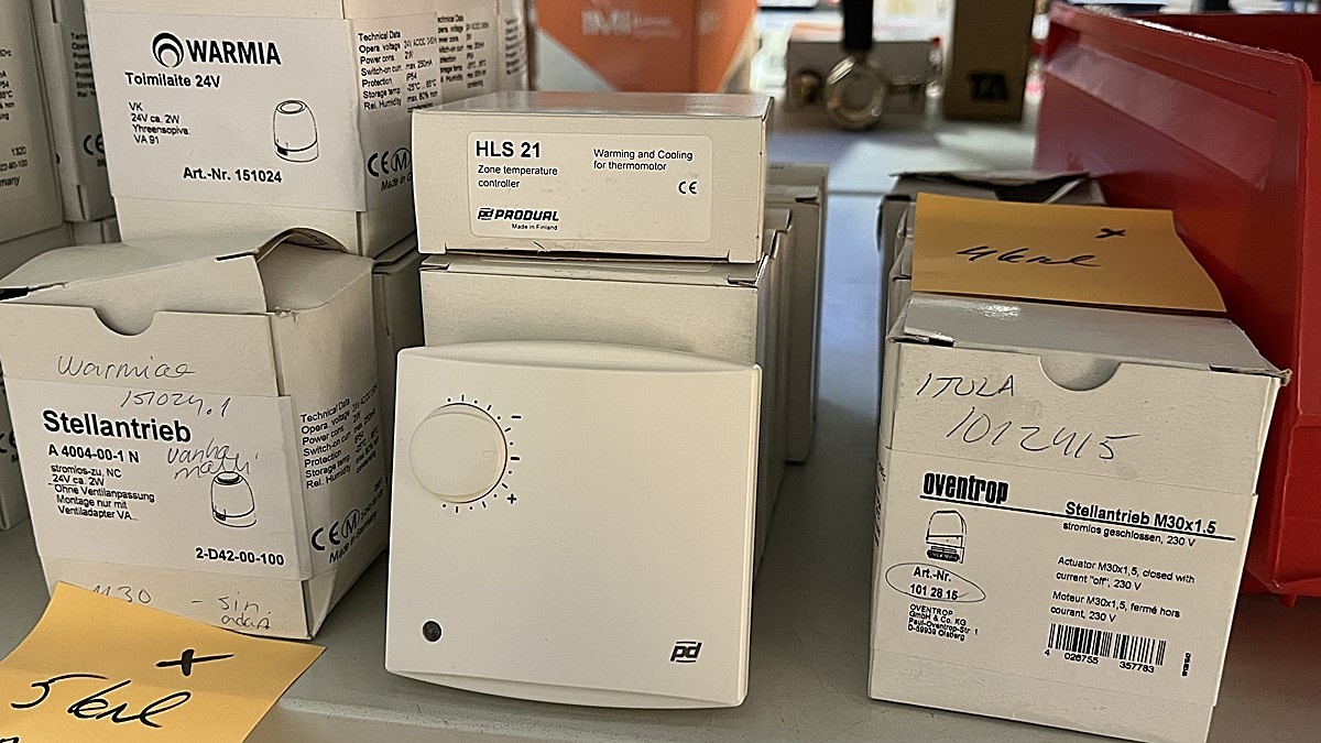 Myyntikohteet » 3. Jakotec Oy:n konkurssipesä (2031649-1), ÄÄNEKOSKI, 08.11.2025 » 37. Toimilaitteet, huonetermostaatit, lämpöenergiamittarit (2 hyllyväliä)