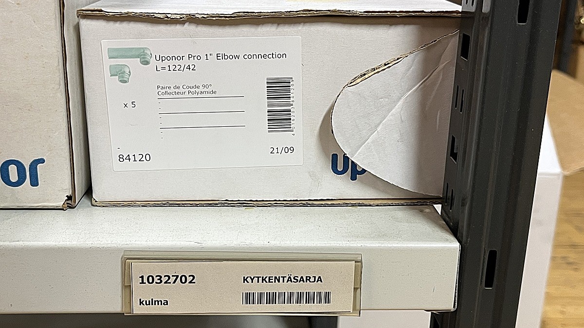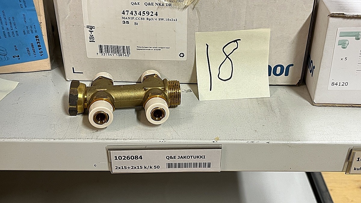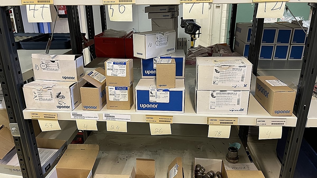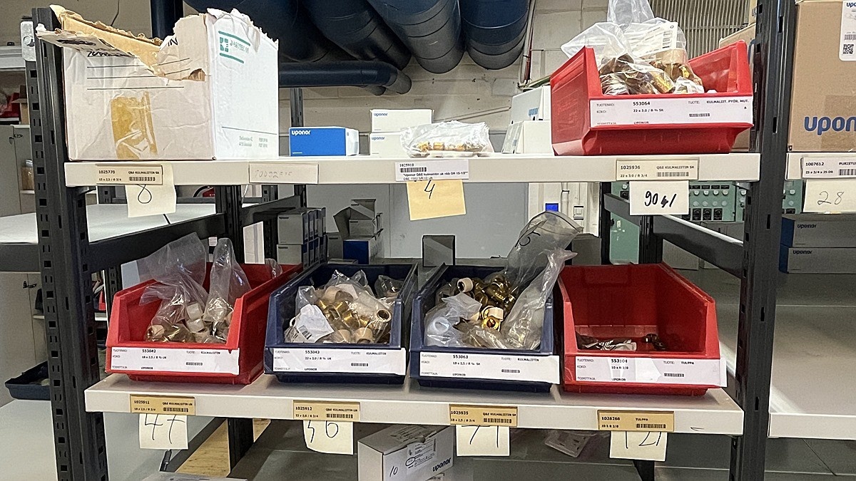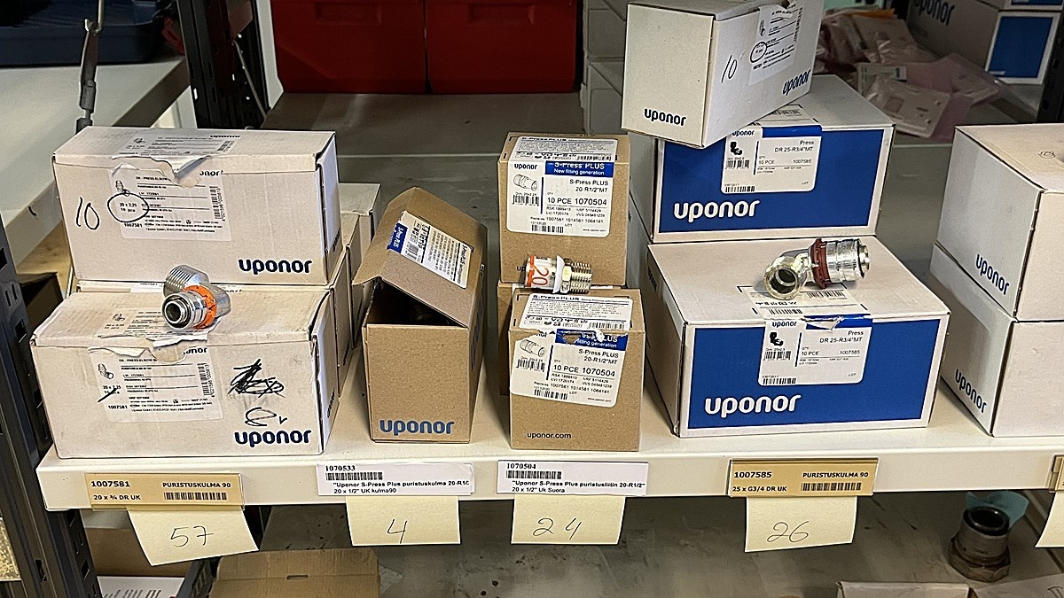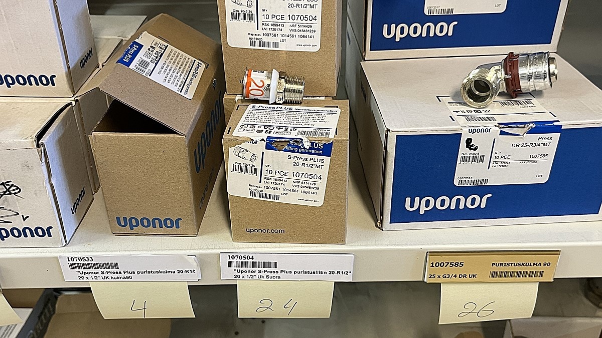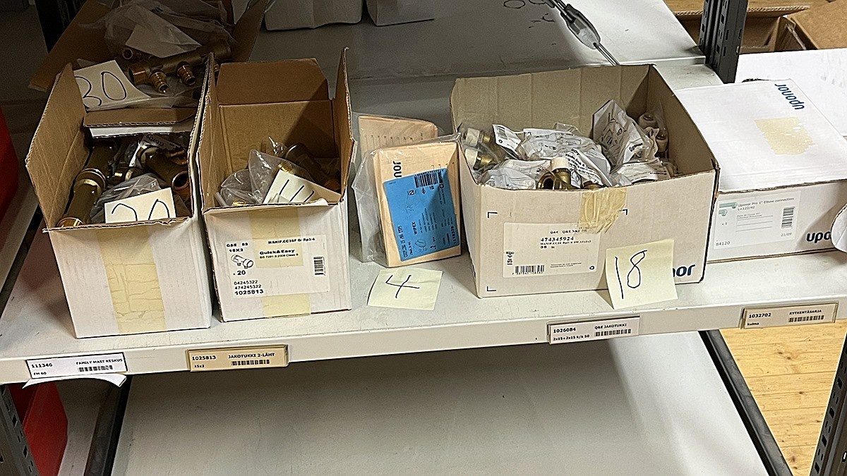 Myyntikohteet » 3. Jakotec Oy:n konkurssipesä (2031649-1), ÄÄNEKOSKI, 08.11.2025 » 40. Puristusliittimet, venttiilit, jakotukit Uponor (4 hyllyväliä)