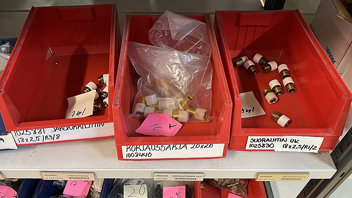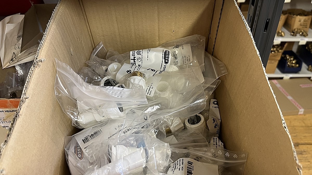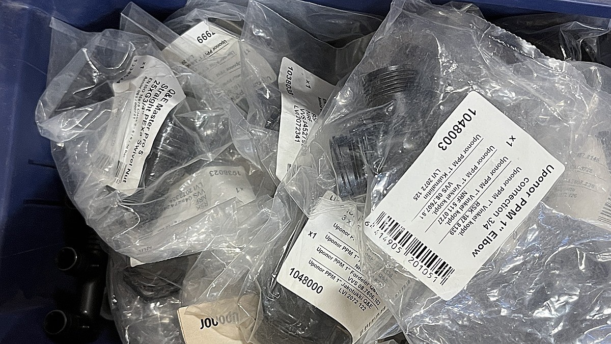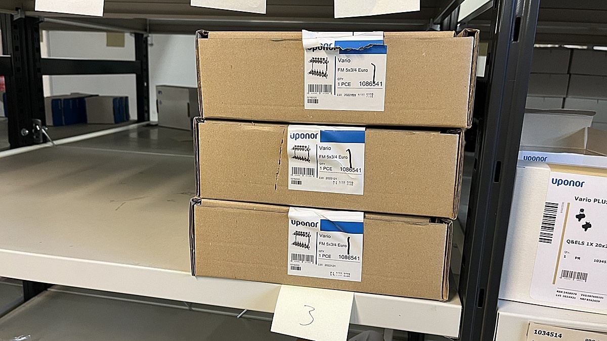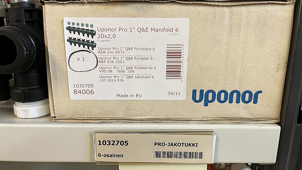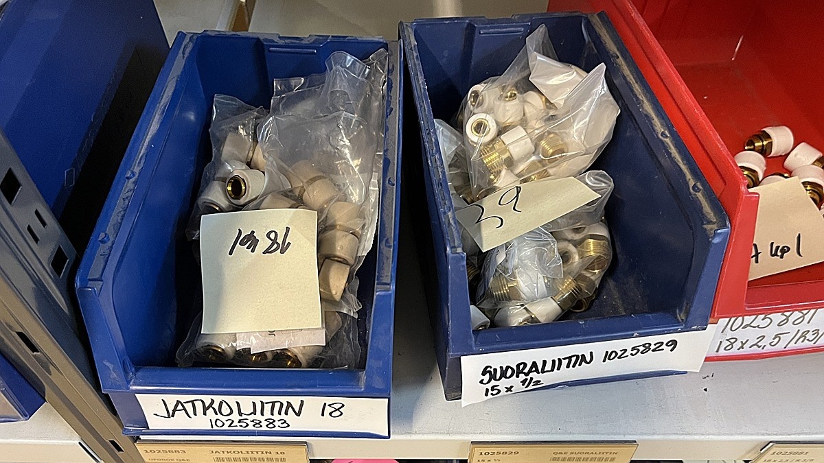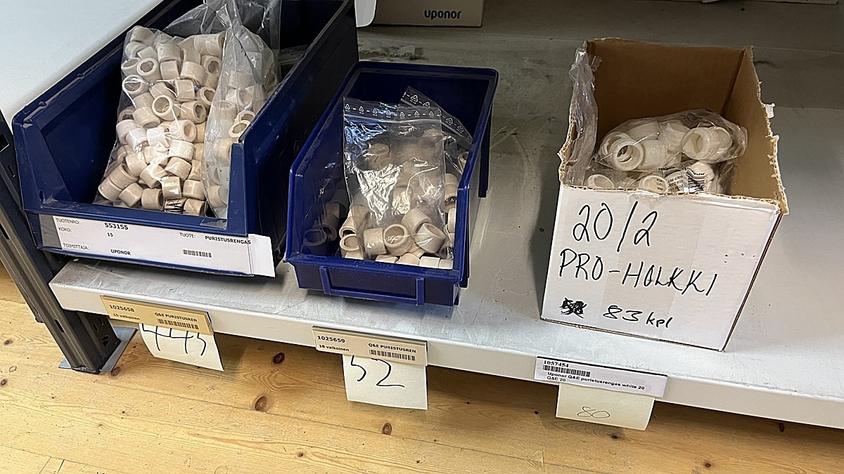 Myyntikohteet » 3. Jakotec Oy:n konkurssipesä (2031649-1), ÄÄNEKOSKI, 08.11.2025 » 40. Puristusliittimet, venttiilit, jakotukit Uponor (4 hyllyväliä)