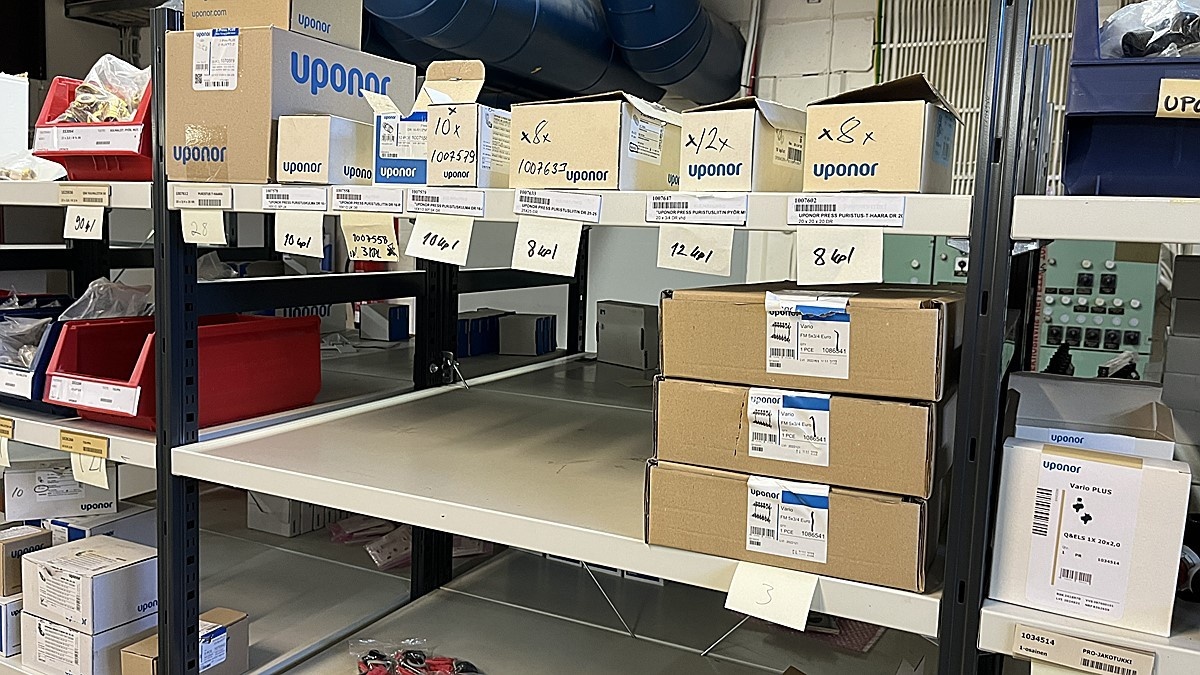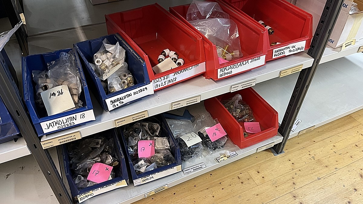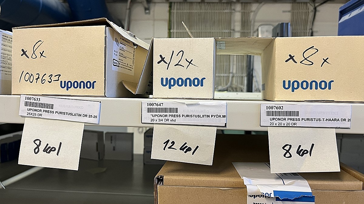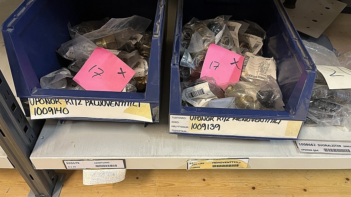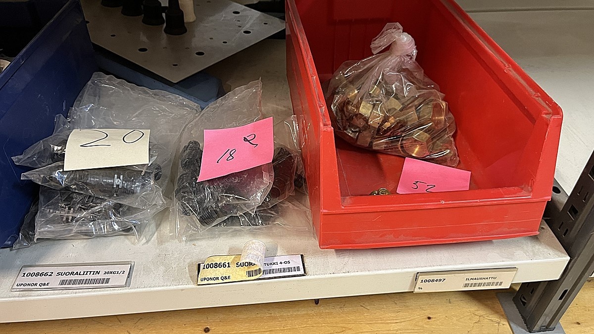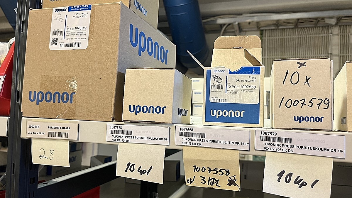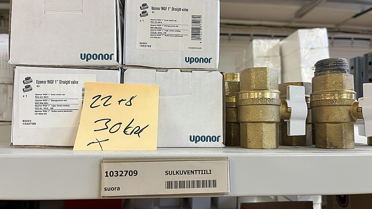 Myyntikohteet » 3. Jakotec Oy:n konkurssipesä (2031649-1), ÄÄNEKOSKI, 08.11.2025 » 40. Puristusliittimet, venttiilit, jakotukit Uponor (4 hyllyväliä)