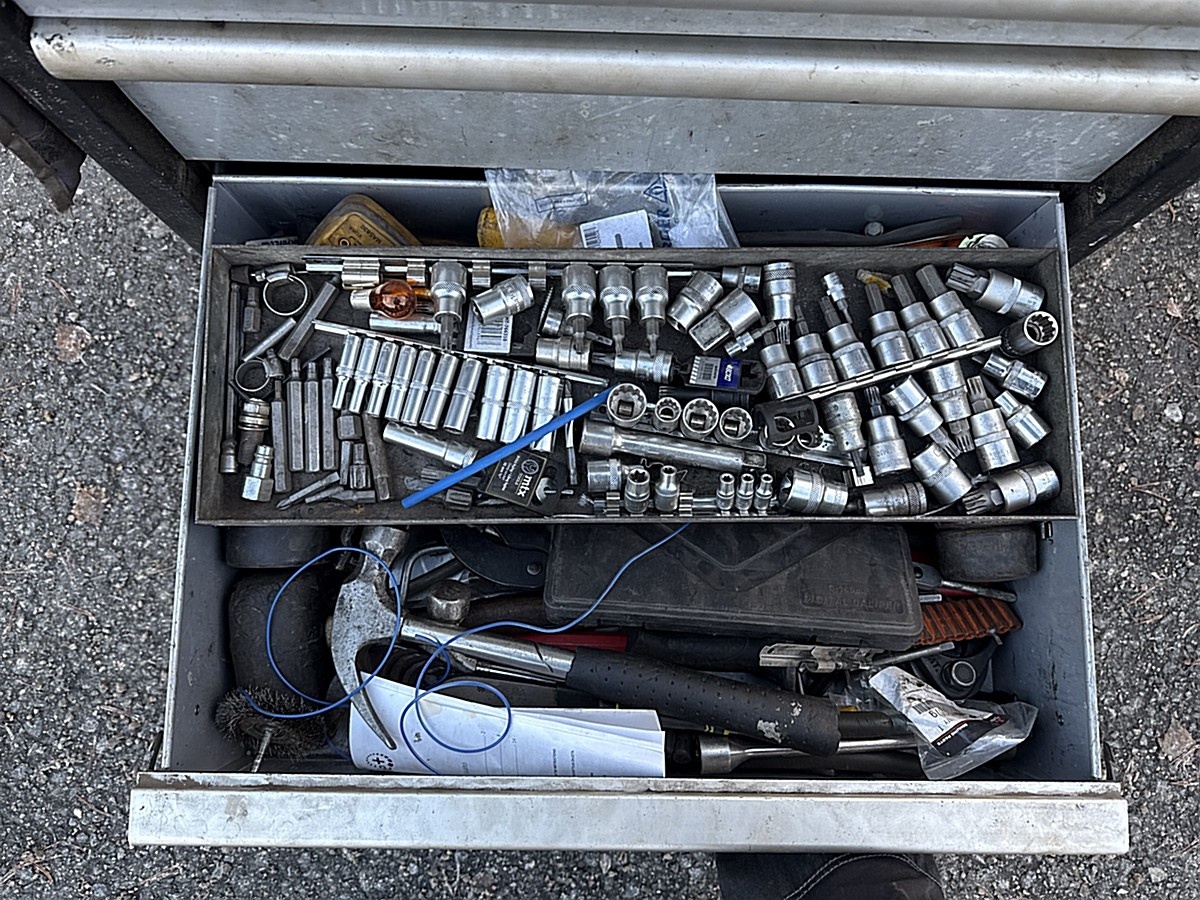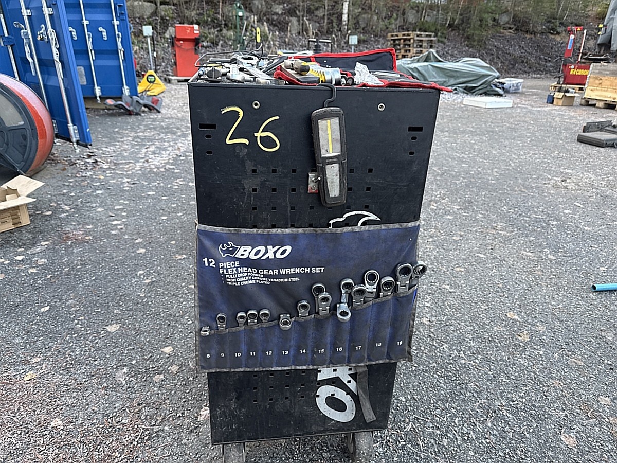 Myyntikohteet » 2. Asennuspalvelu J.Karvinen Oy:n konkurssipesä (3200020-8), LAUKAA, 11.11.2025 » 26. Työkaluvaunu ja työkalut sekä räikkälenkkisarja Boxo
