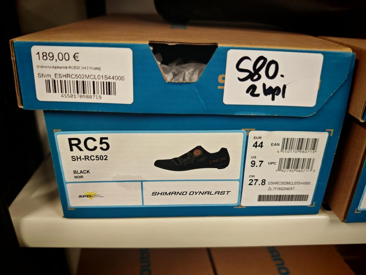 Myyntikohteet » 6. Seven Bikes Oy:n konkurssipesä, TAMPERE (3215327-1), 25.11.2025 » S80. Pyöräilykengät Shimano RC5 (44, 44), 2 paria