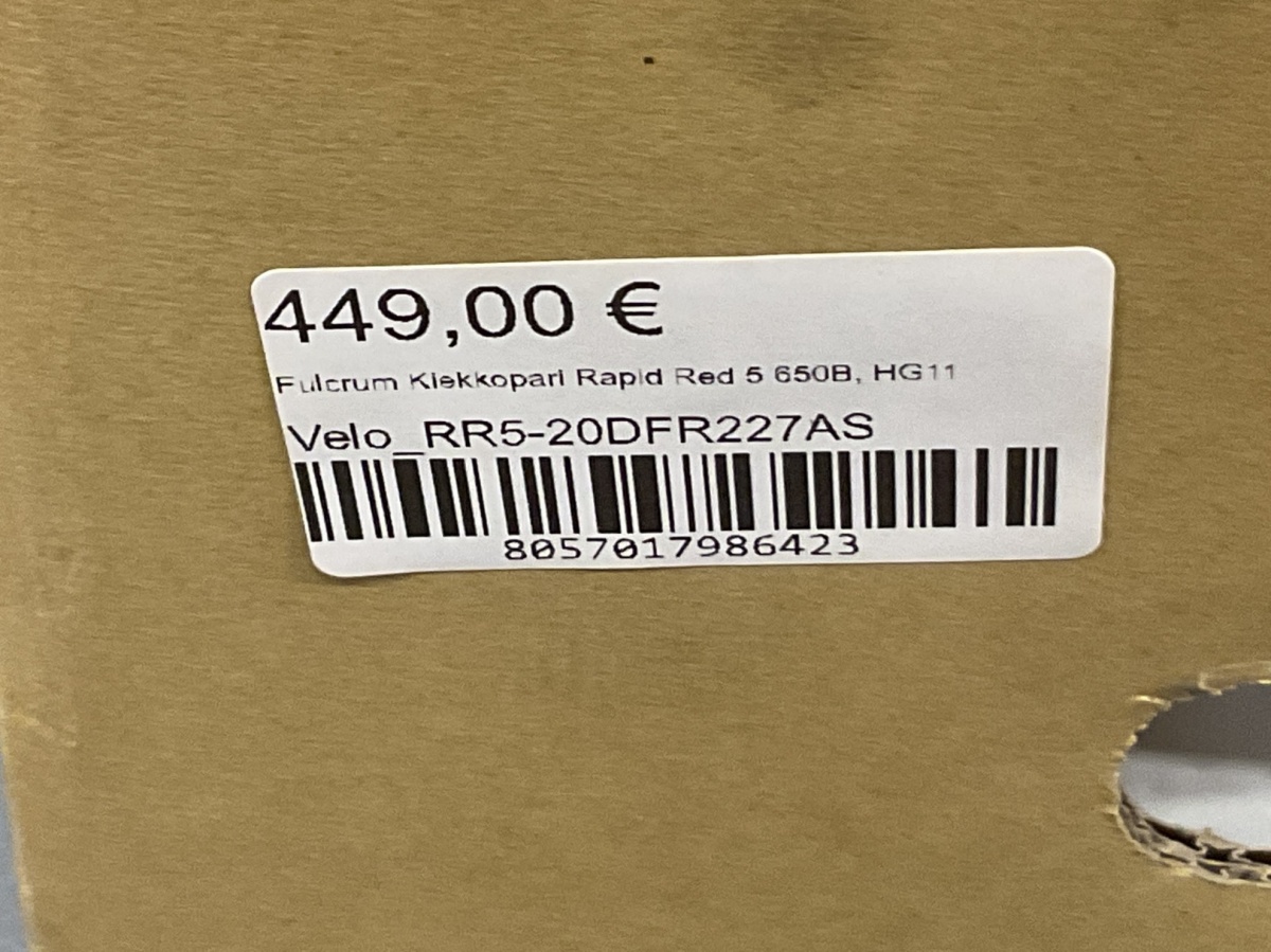 Myyntikohteet » 7. Seven Bikes Oy:n konkurssipesä, TAMPERE (3215327-1), 26.11.2025 » Y 11. Fulcrum Kiekkopari Rapid Red 5 650B, HG11