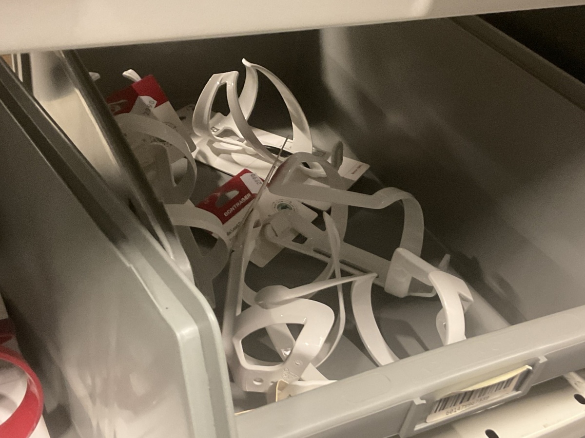 Myyntikohteet » 7. Seven Bikes Oy:n konkurssipesä, TAMPERE (3215327-1), 26.11.2025 » Y 17. Runkolukot, valaisimet, pumput ja pullotelineet yhdessä hyllyvälikössä (n. 45 kappaletta)