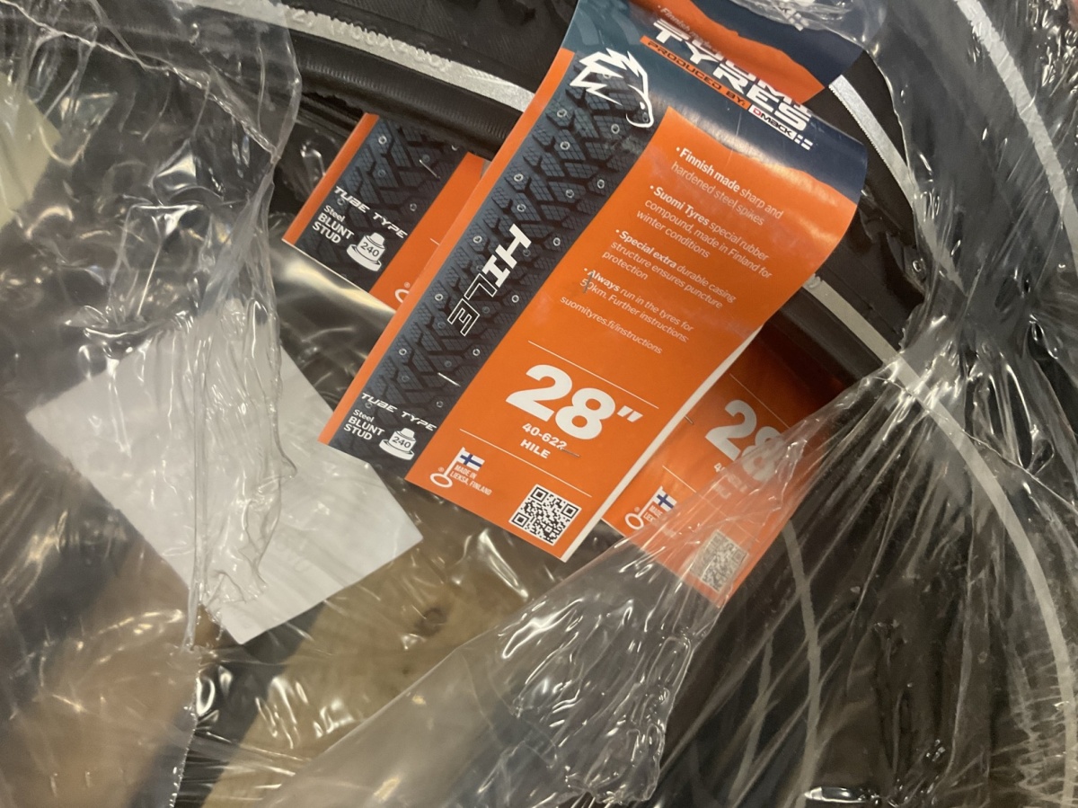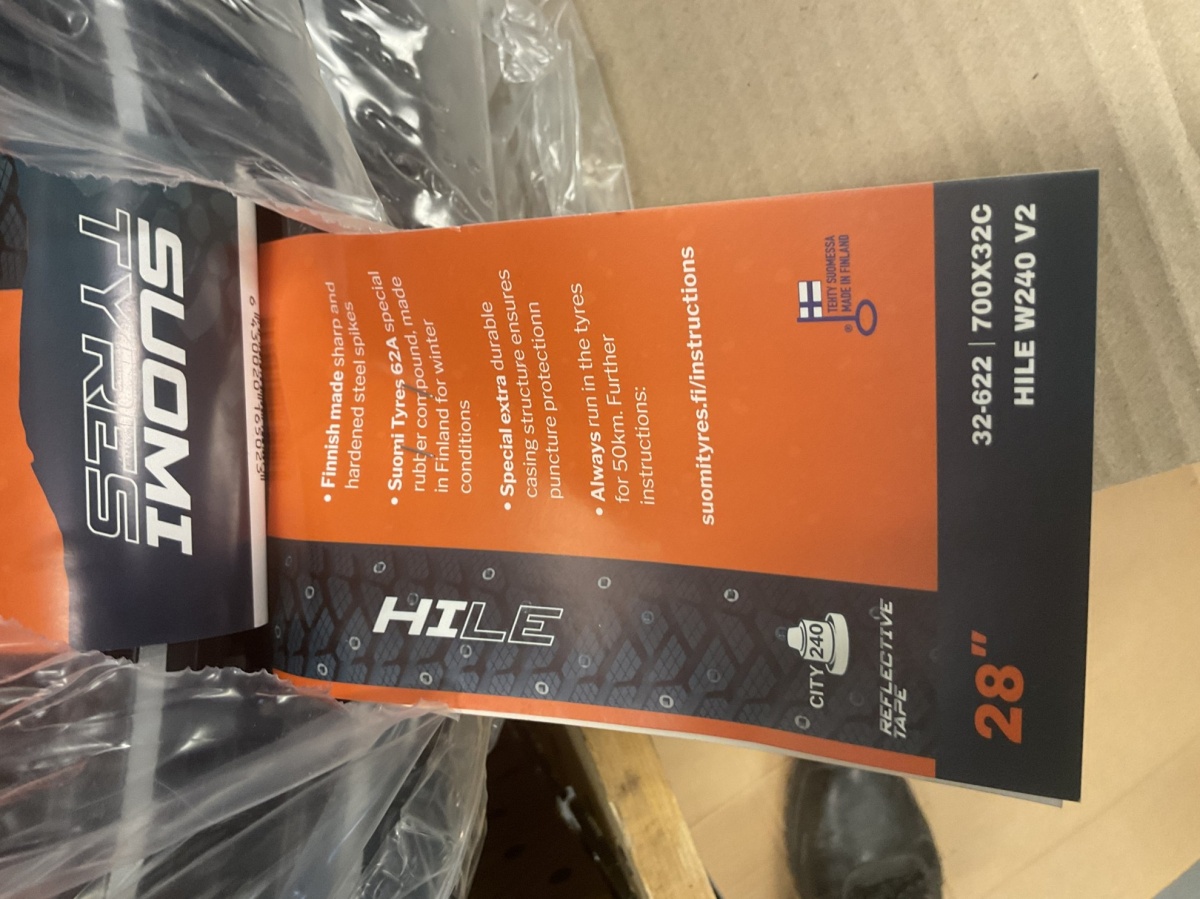 Myyntikohteet » 7. Seven Bikes Oy:n konkurssipesä, TAMPERE (3215327-1), 26.11.2025 » Y 26. Sähköpyörän Suomi Tyres 28” nastarenkaat, (17 kappaletta)