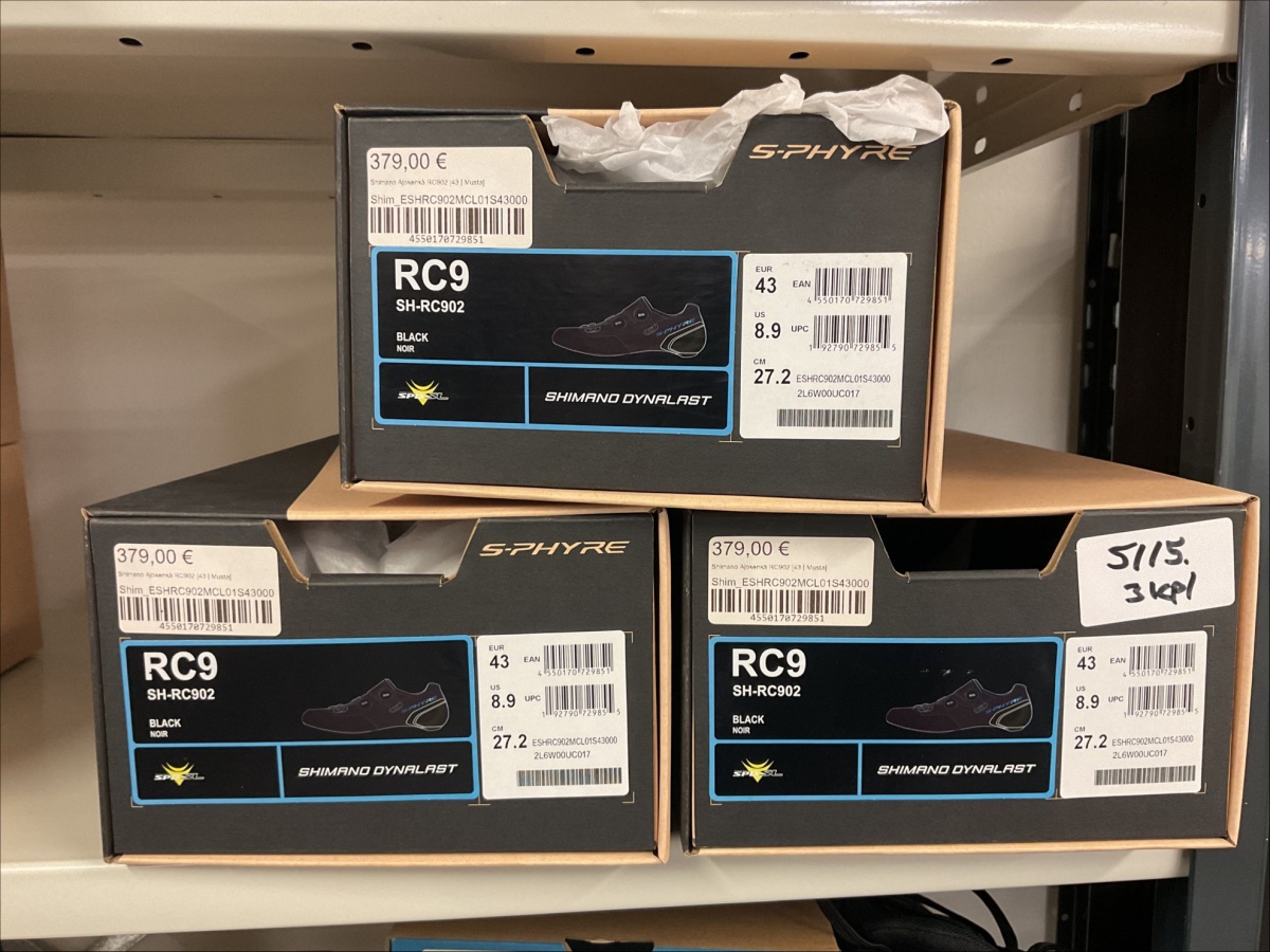 Myyntikohteet » 16. Seven Bikes Oy:n konkurssipesä, TAMPERE (3215327-1), 07.12.2025 » S115. Maantiekengät Shimano RC902 (koot 43), 3 paria