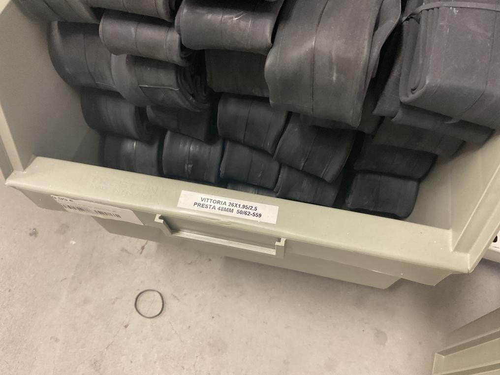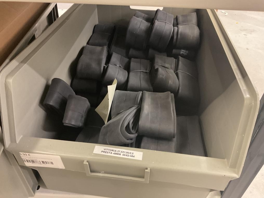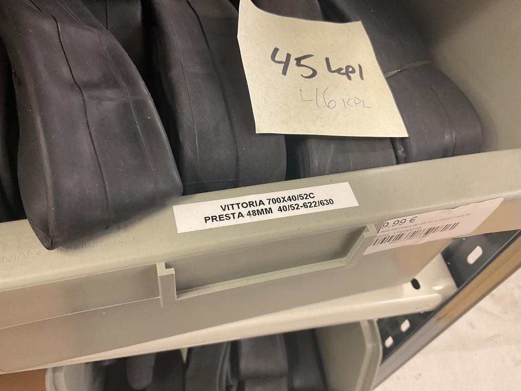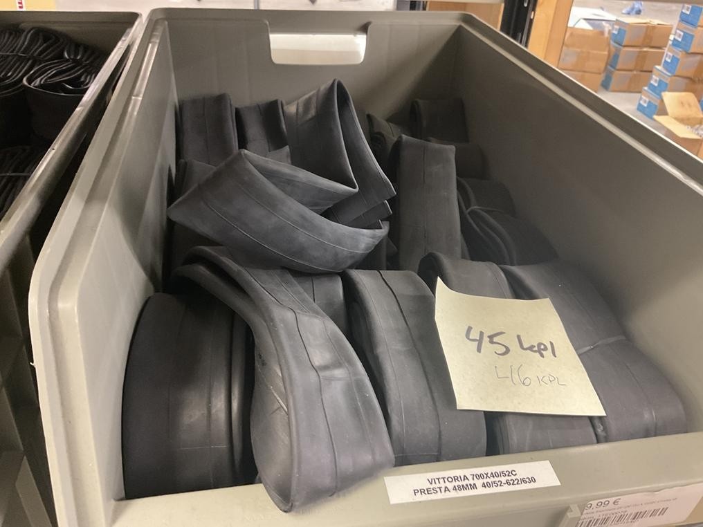 Myyntikohteet » 18. Seven Bikes Oy:n konkurssipesä, TAMPERE (3215327-1), 09.12.2025 » T123. 3-hyllytasolla olevat polkupyörien sisärenkaat ym. (Continental & Vittoria) yhteensä 6 laatikkoa