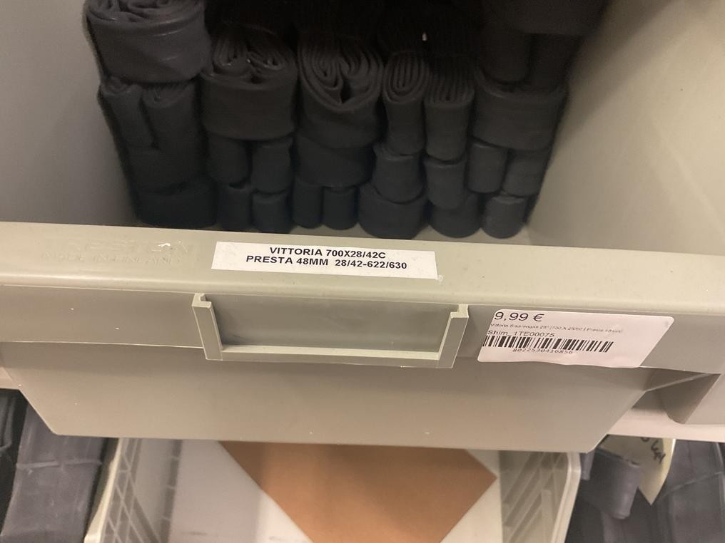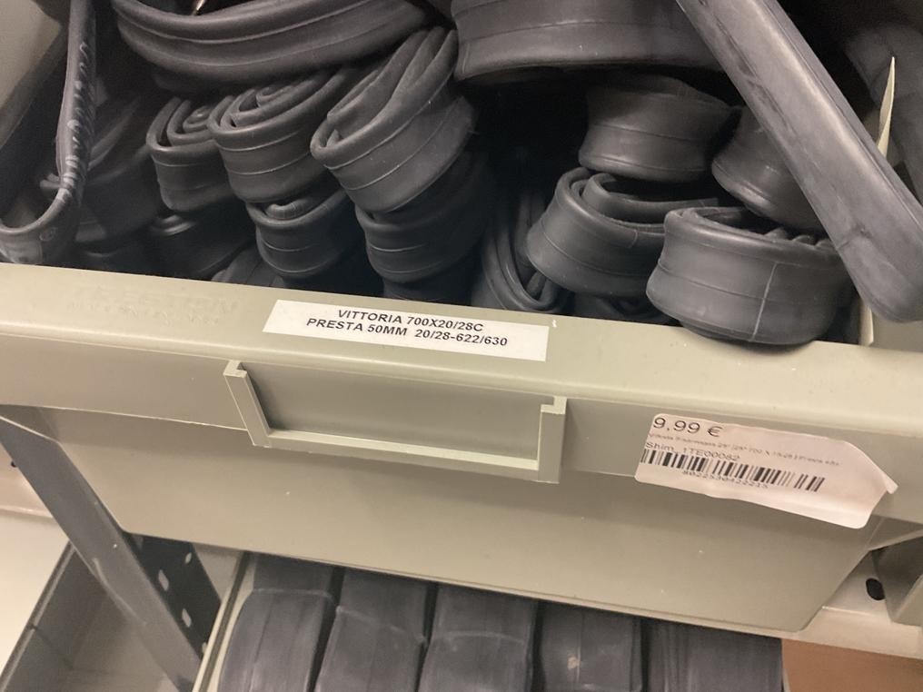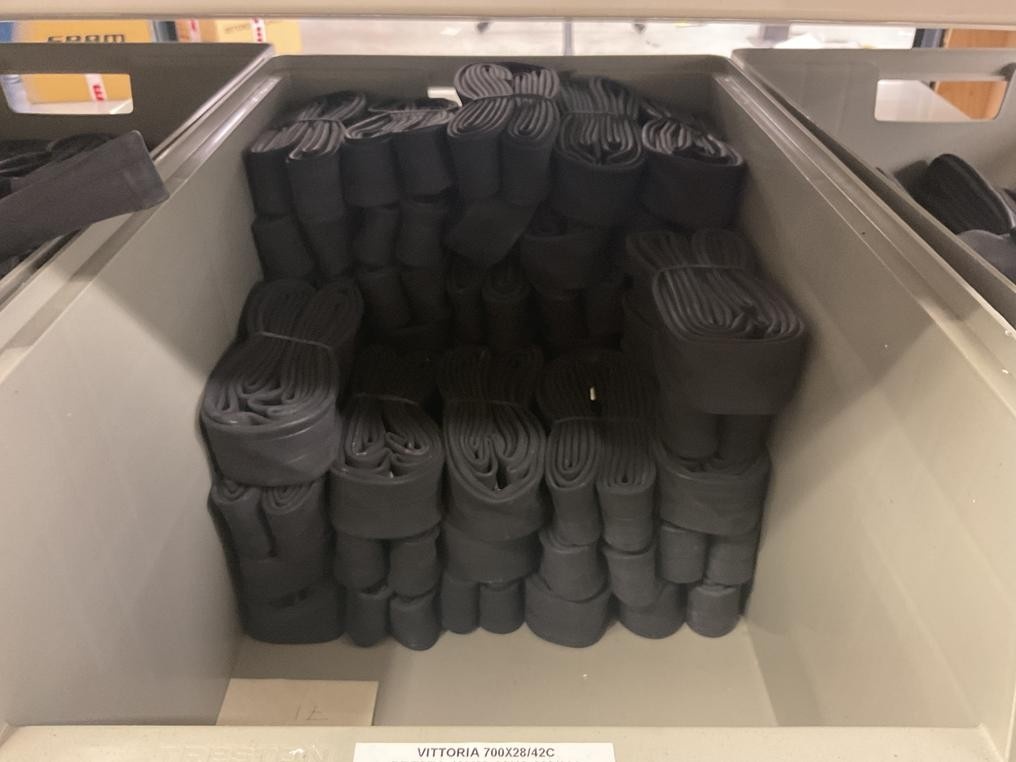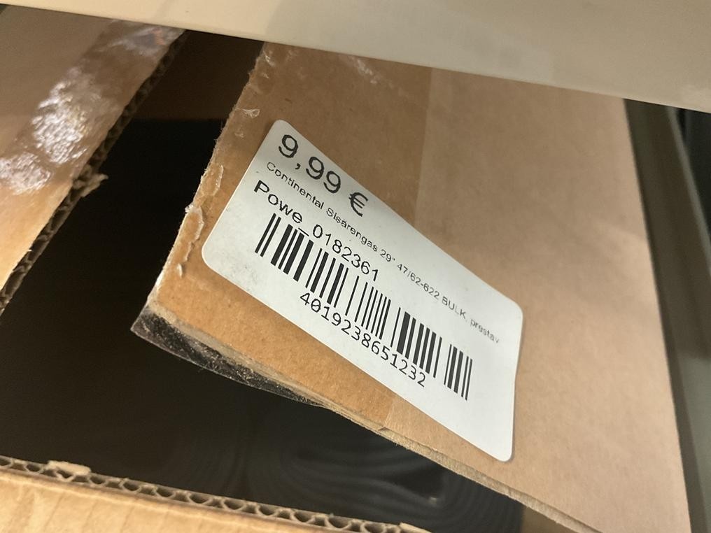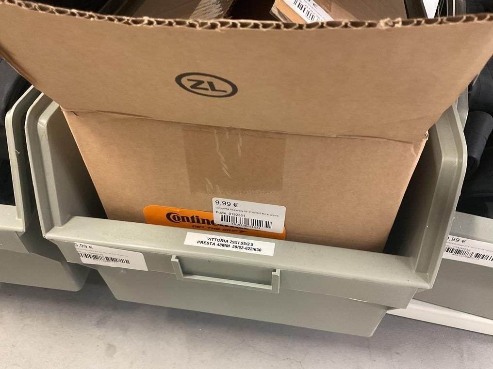 Myyntikohteet » 18. Seven Bikes Oy:n konkurssipesä, TAMPERE (3215327-1), 09.12.2025 » T123. 3-hyllytasolla olevat polkupyörien sisärenkaat ym. (Continental & Vittoria) yhteensä 6 laatikkoa