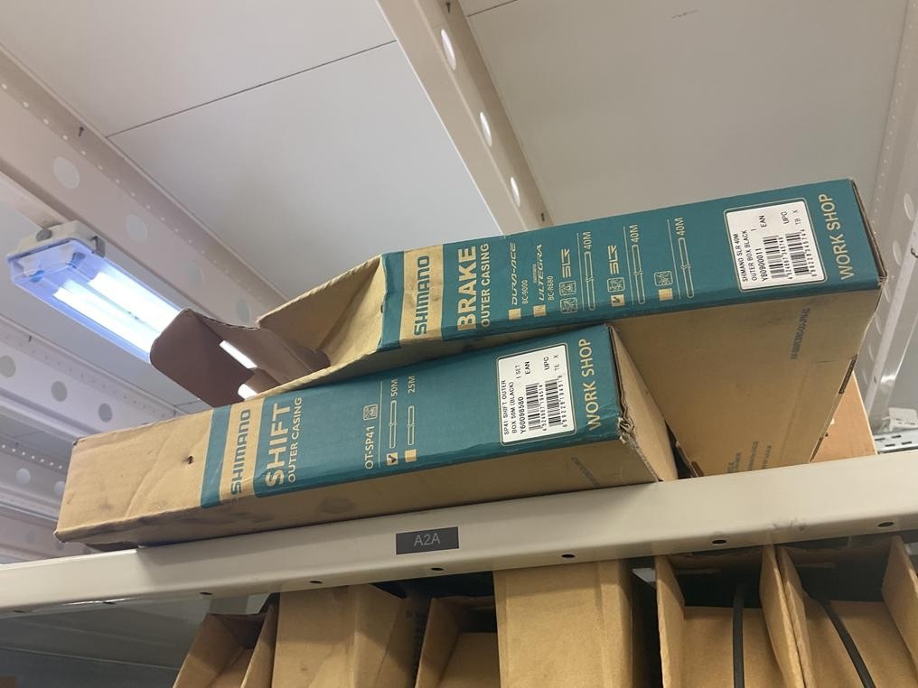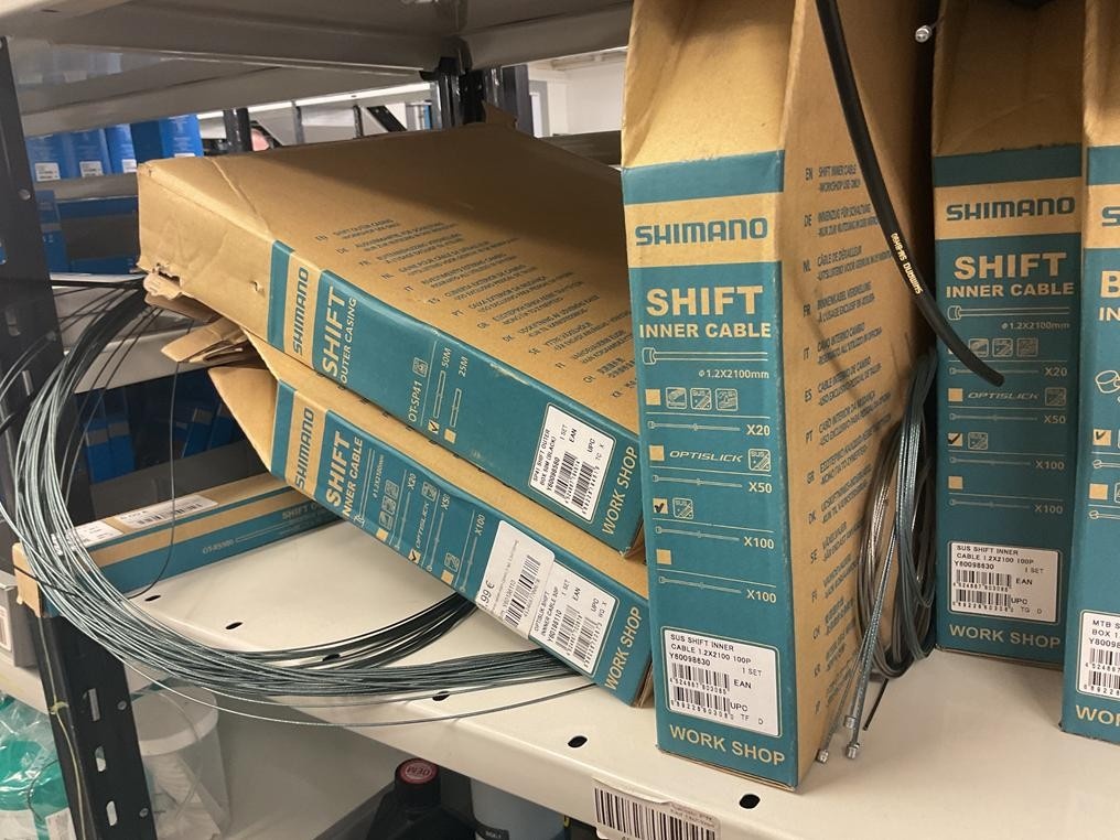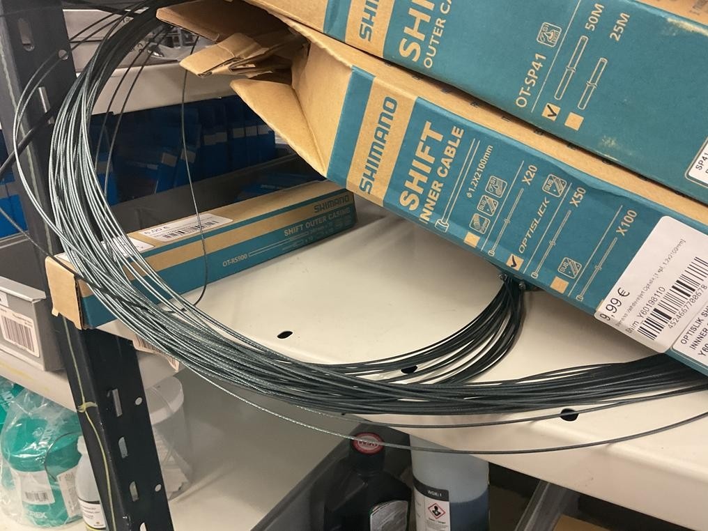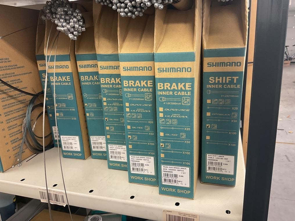 Myyntikohteet » 18. Seven Bikes Oy:n konkurssipesä, TAMPERE (3215327-1), 09.12.2025 » T124. 3-hyllytasolla olevat polkupyörien vaihde- ja jarruvaijerit Shimano yhteensä 20 laatikkoa