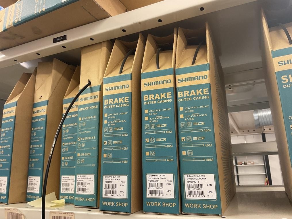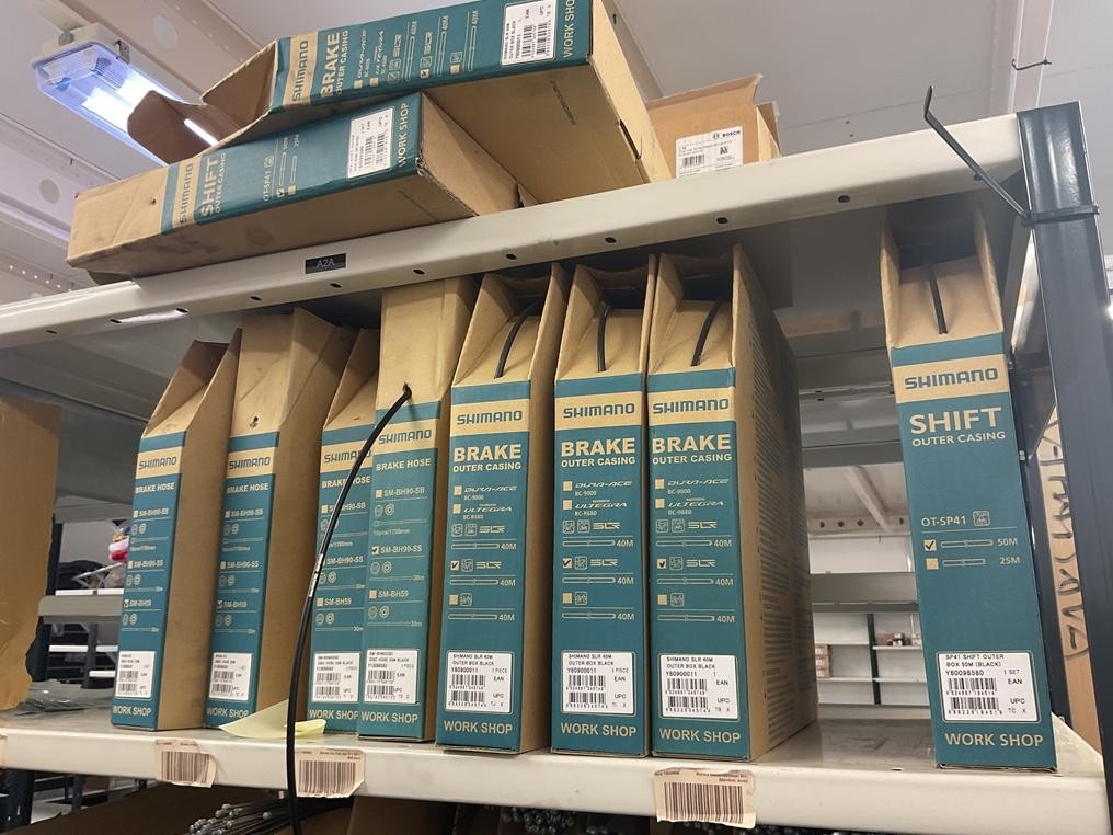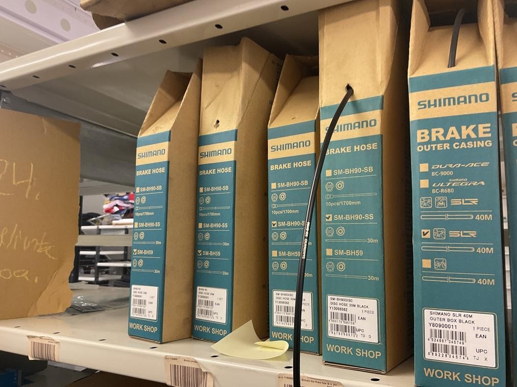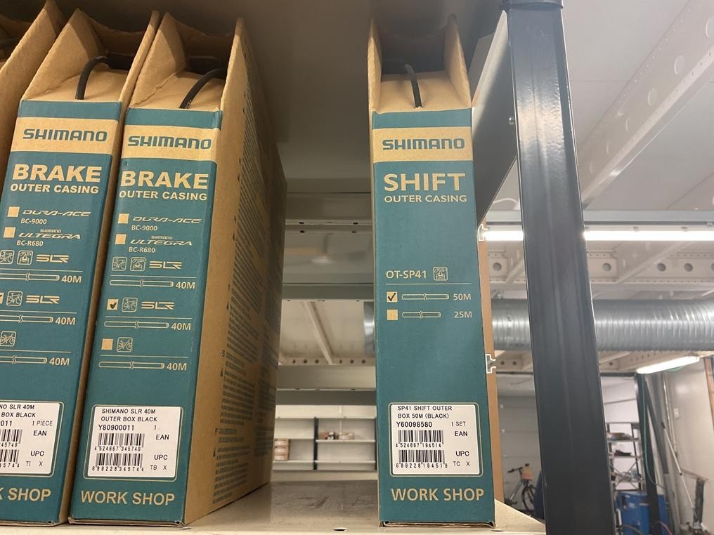 Myyntikohteet » 18. Seven Bikes Oy:n konkurssipesä, TAMPERE (3215327-1), 09.12.2025 » T124. 3-hyllytasolla olevat polkupyörien vaihde- ja jarruvaijerit Shimano yhteensä 20 laatikkoa