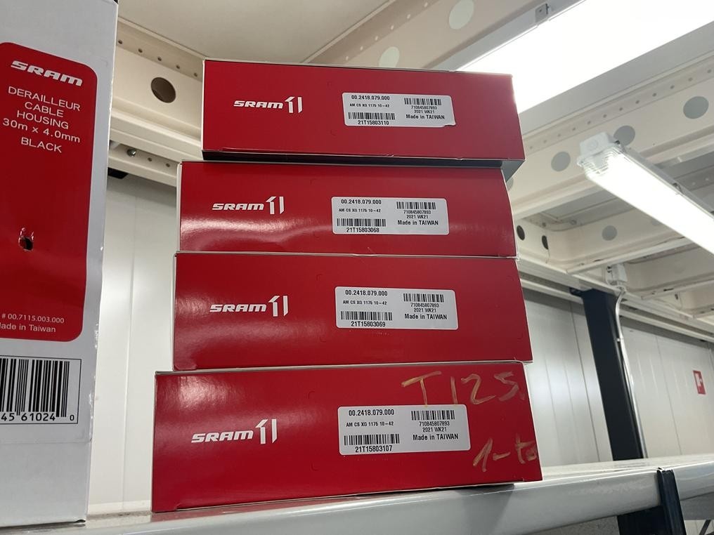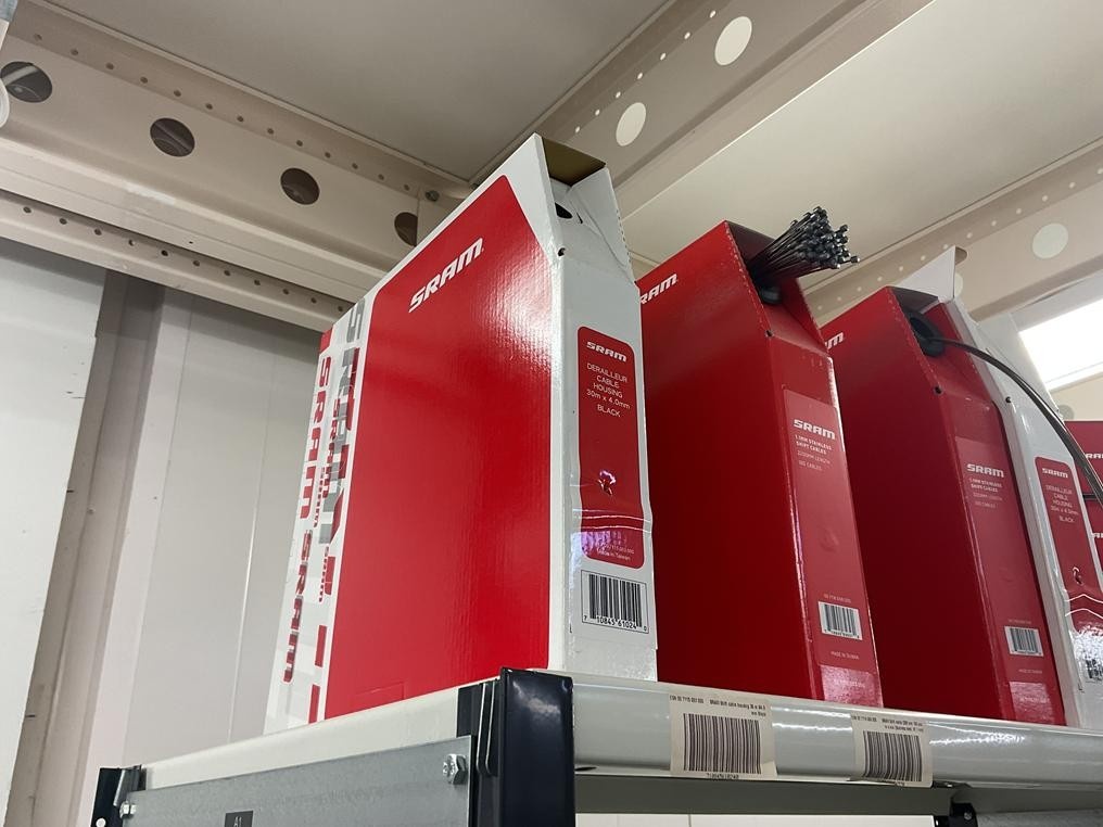 Myyntikohteet » 18. Seven Bikes Oy:n konkurssipesä, TAMPERE (3215327-1), 09.12.2025 » T125. Hyllytasolla olevat polkupyörien vaijerit ym. Sram yhteensä 8 laatikkoa
