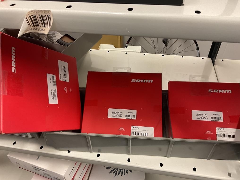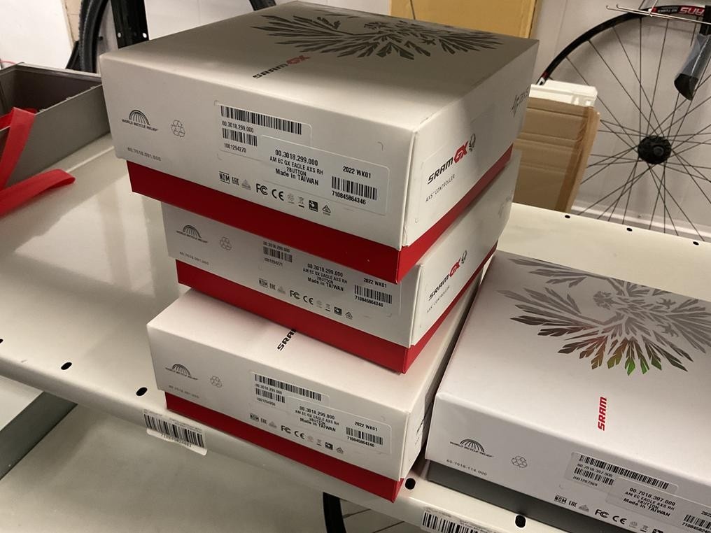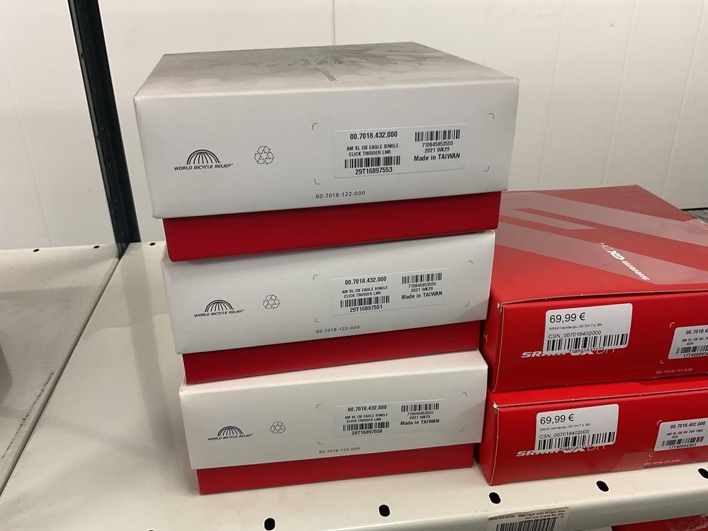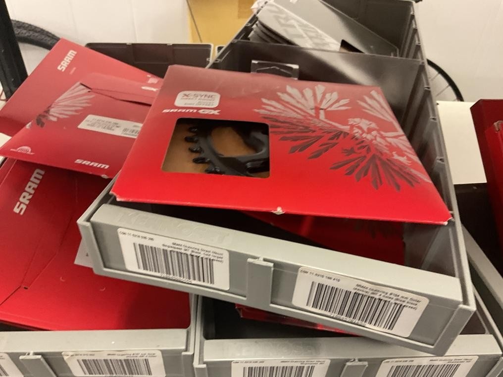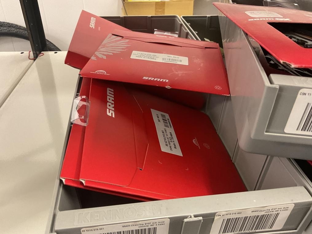 Myyntikohteet » 18. Seven Bikes Oy:n konkurssipesä, TAMPERE (3215327-1), 09.12.2025 » T129. 3-hyllytasolla olevat polkupyörien varaosat Sram yhteensä 17 kappaletta