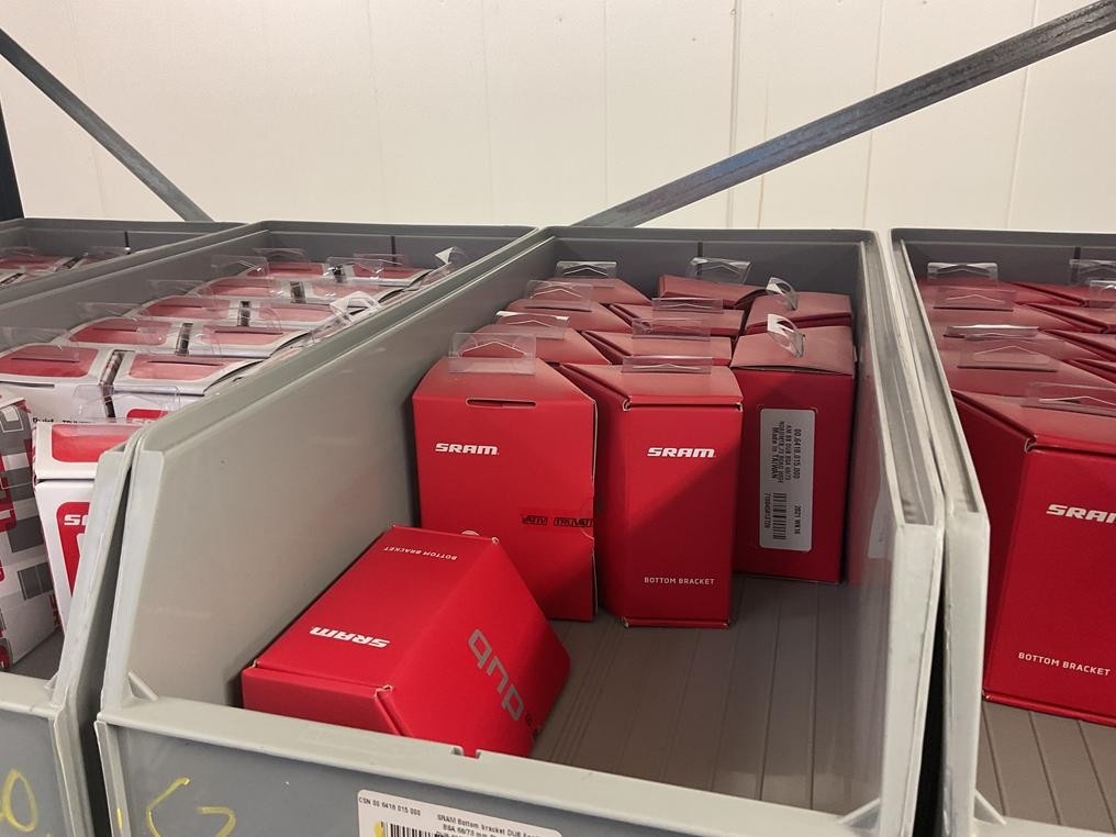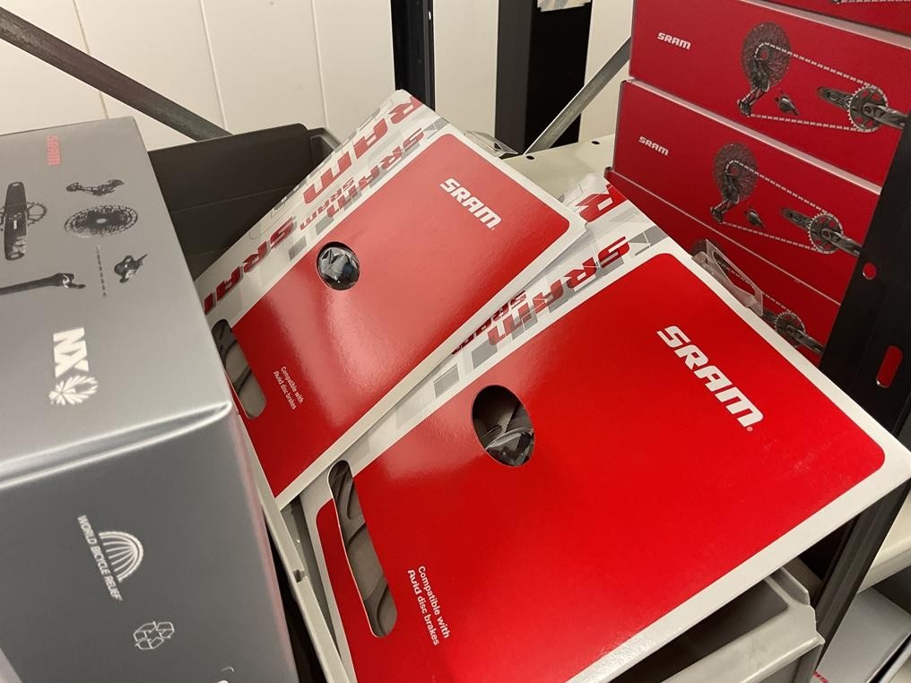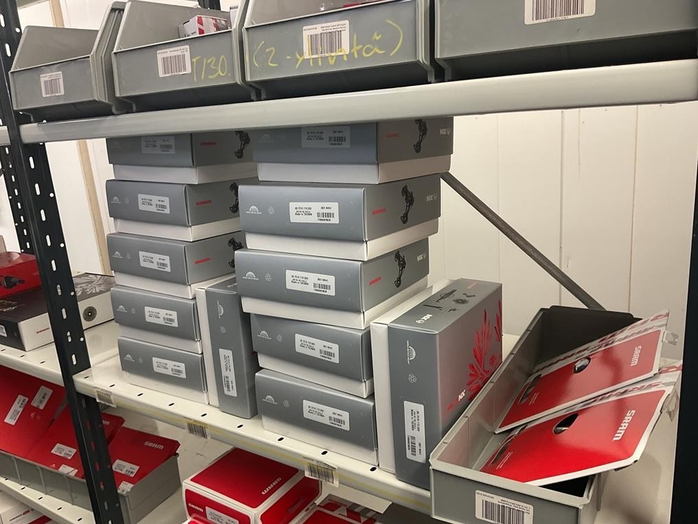 Myyntikohteet » 18. Seven Bikes Oy:n konkurssipesä, TAMPERE (3215327-1), 09.12.2025 » T130. 2-hyllytasolla olevat polkupyörien varaosat Sram yhteensä 52 kappaletta