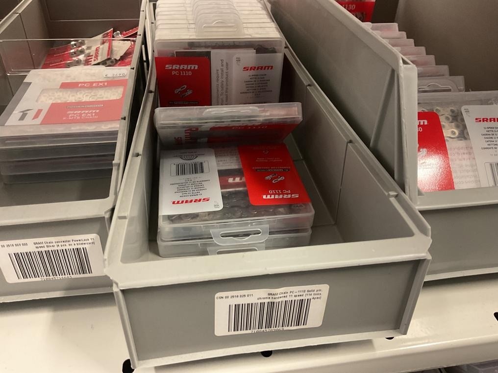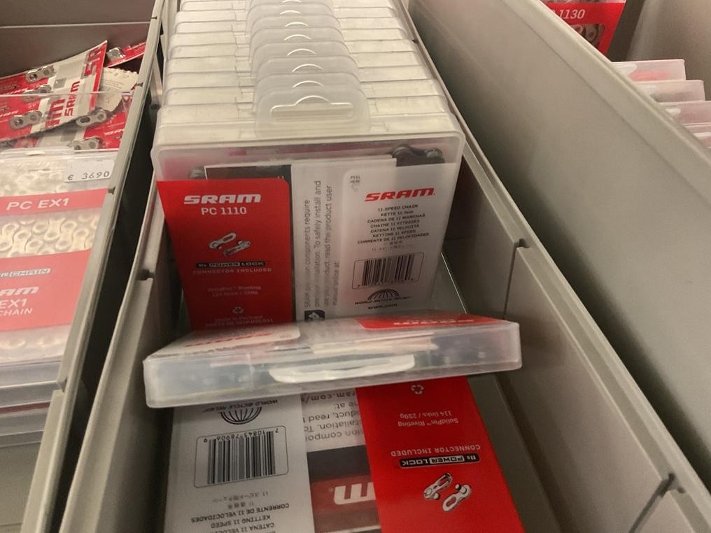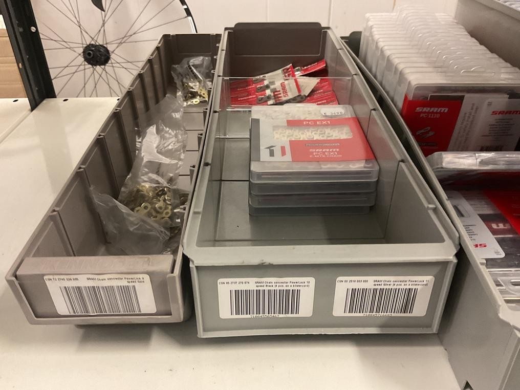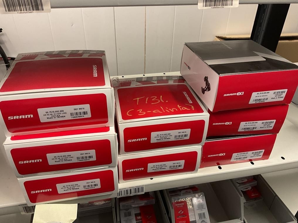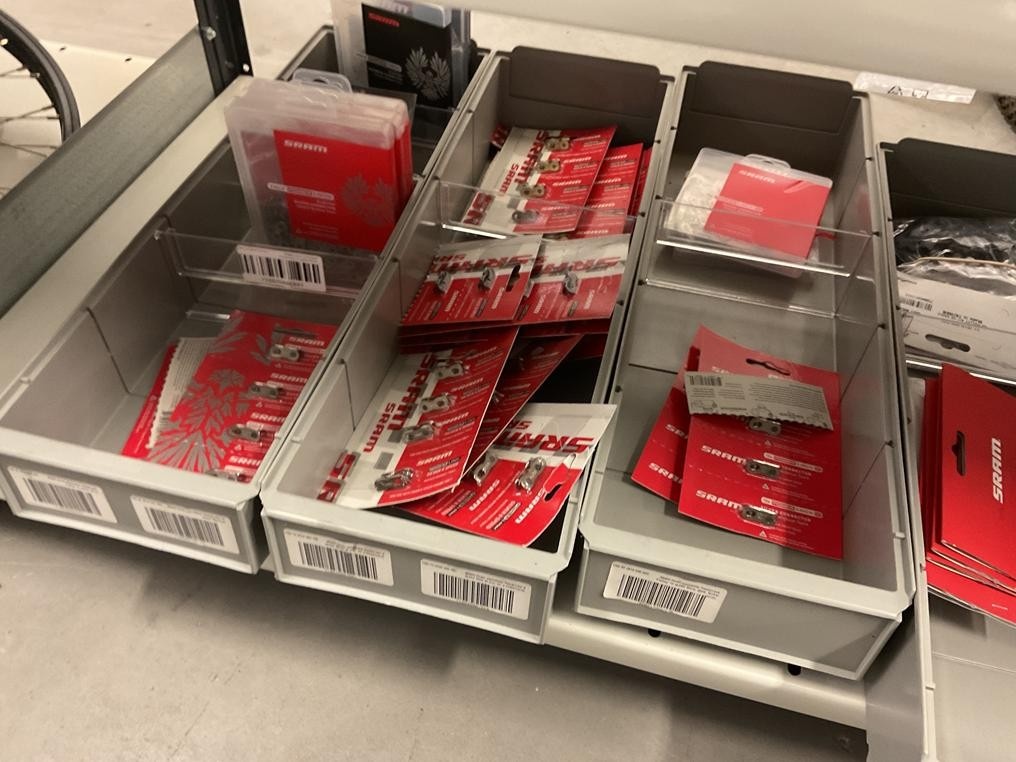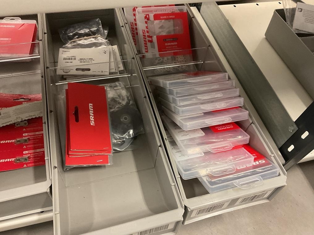 Myyntikohteet » 18. Seven Bikes Oy:n konkurssipesä, TAMPERE (3215327-1), 09.12.2025 » T131. 3-hyllytasolla olevat polkupyörien varaosat Sram yhteensä 74 kappaletta