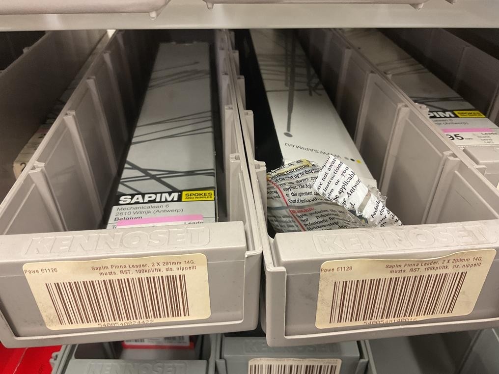 Myyntikohteet » 18. Seven Bikes Oy:n konkurssipesä, TAMPERE (3215327-1), 09.12.2025 » T135/2. 4-hyllytasolla olevat polkupyörien pinnat ym.