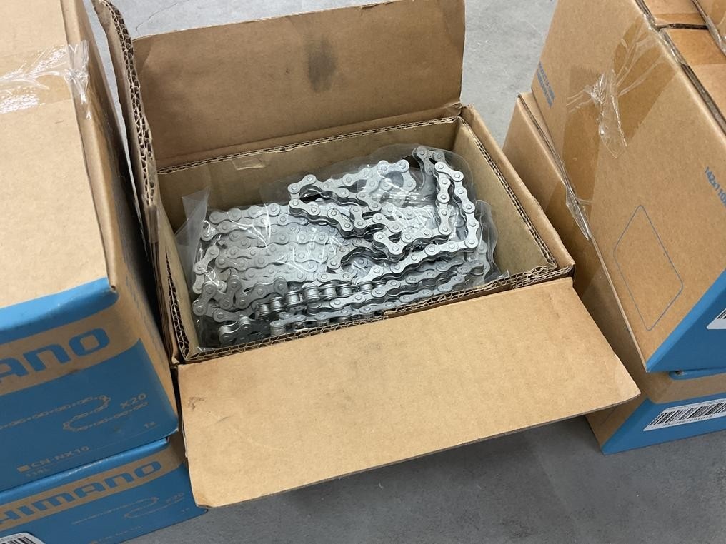 Myyntikohteet » 18. Seven Bikes Oy:n konkurssipesä, TAMPERE (3215327-1), 09.12.2025 » T143. Shimano polkupyörien ketjut 8 pakettia (1 avattu / vajaa)