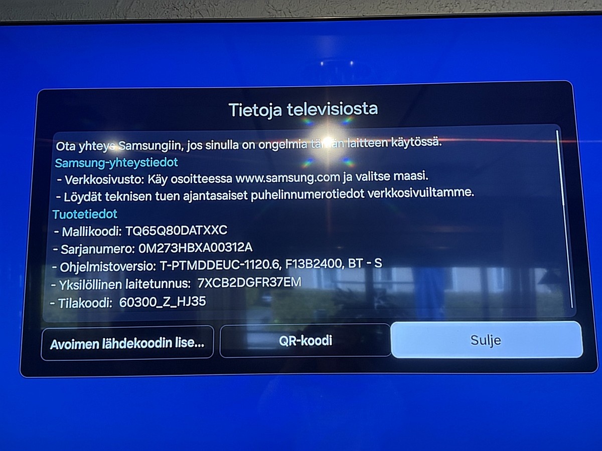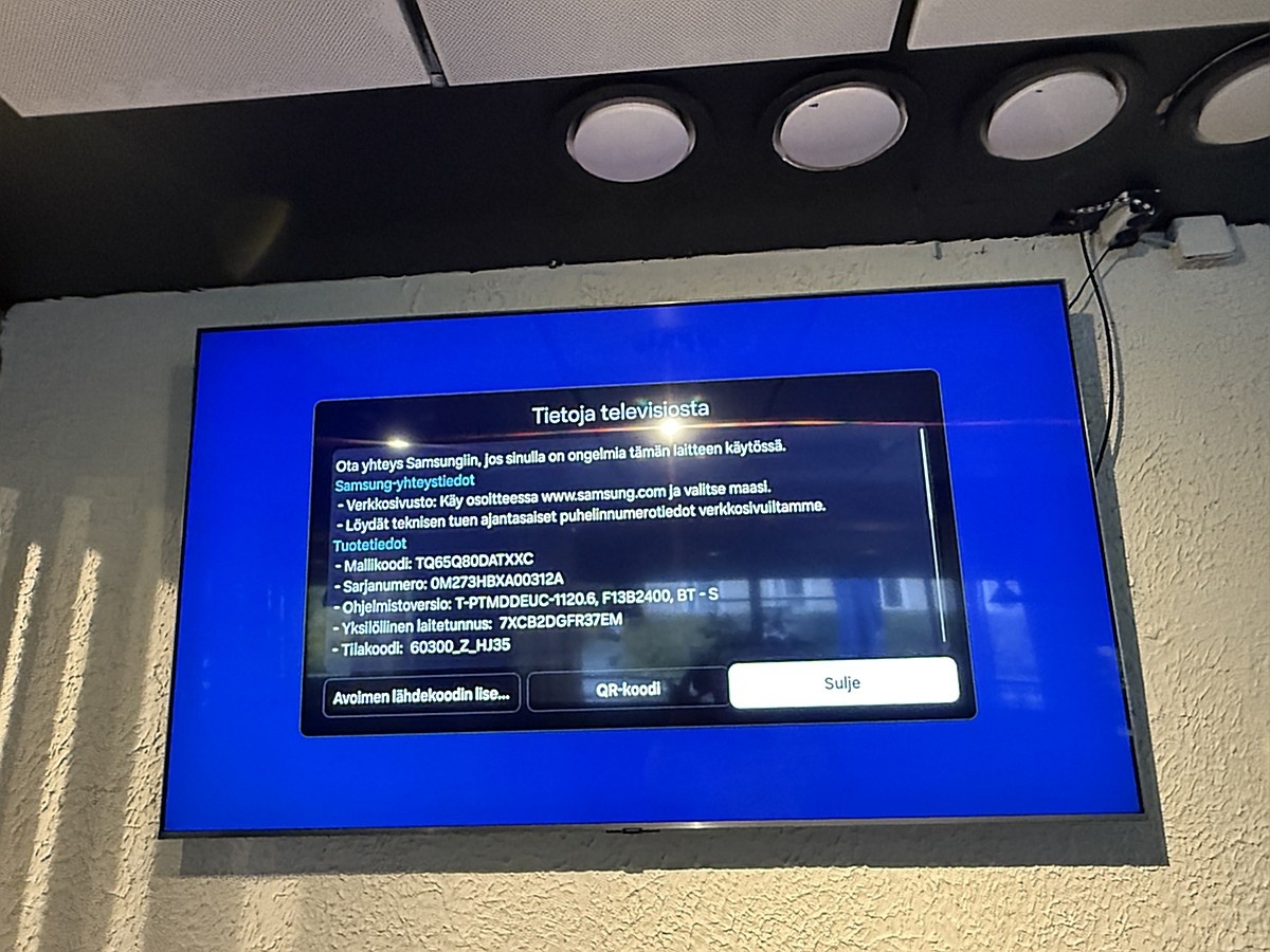 Myyntikohteet » 1. Ravintola Wanha Tappi Oy:n konkurssipesä (2434798-1), TAMPERE, 09.01.2026 » 01. Televisio 65 in Samsung Q80D 4K QLED älytelevisio