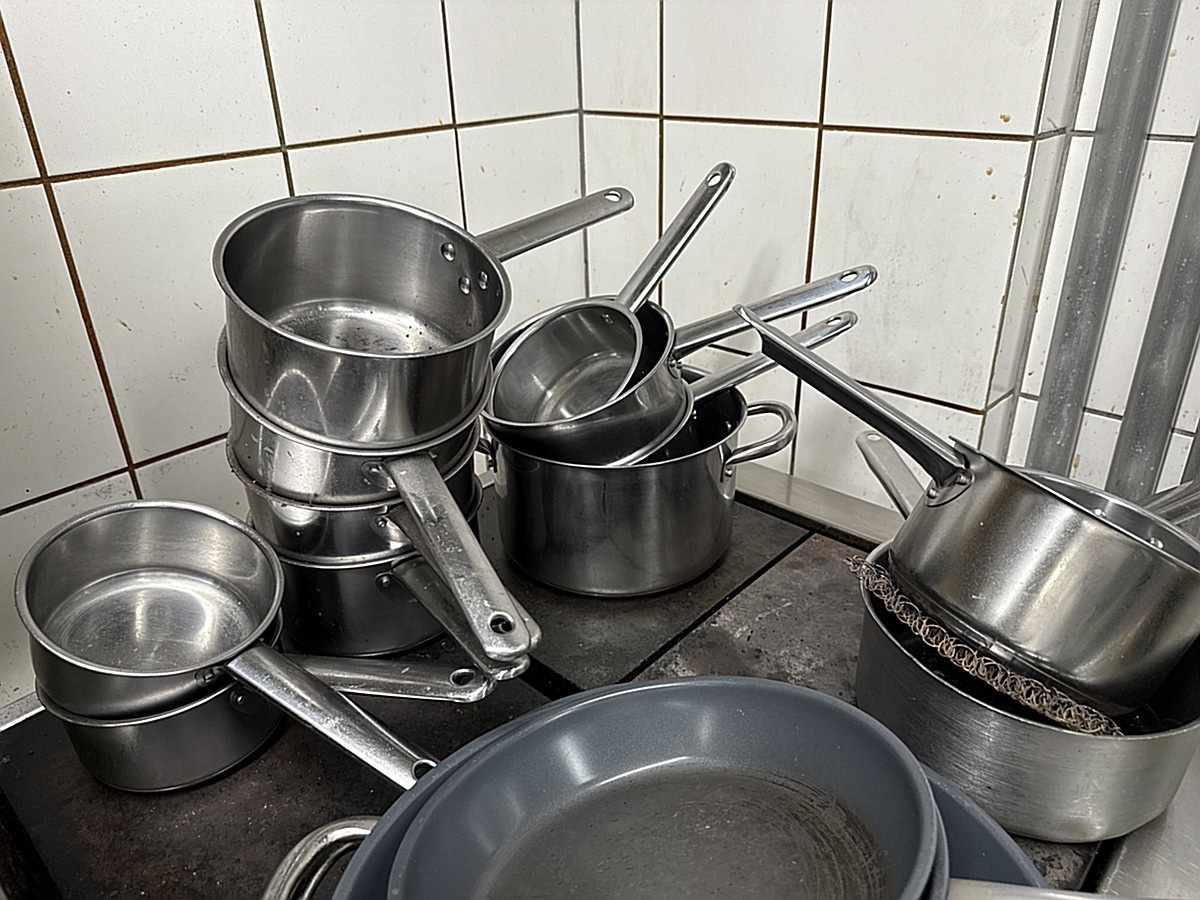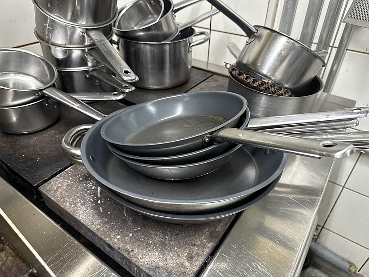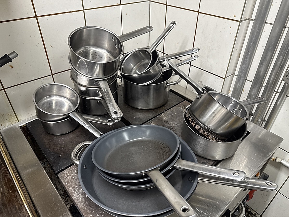 Myyntikohteet » 2. Ravintola Wanha Tappi Oy:n konkurssipesä (2434798-1), TAMPERE, 09.01.2026 » 28. Keittiövälineet mm. Mikro, veitsiä, paistinpannuja, kattiloita, tehosekoitin yms.
