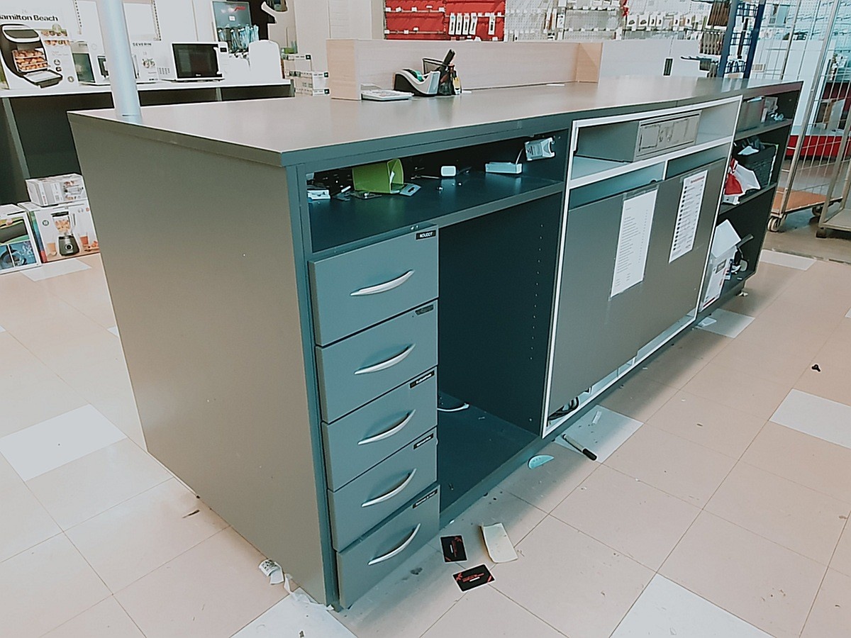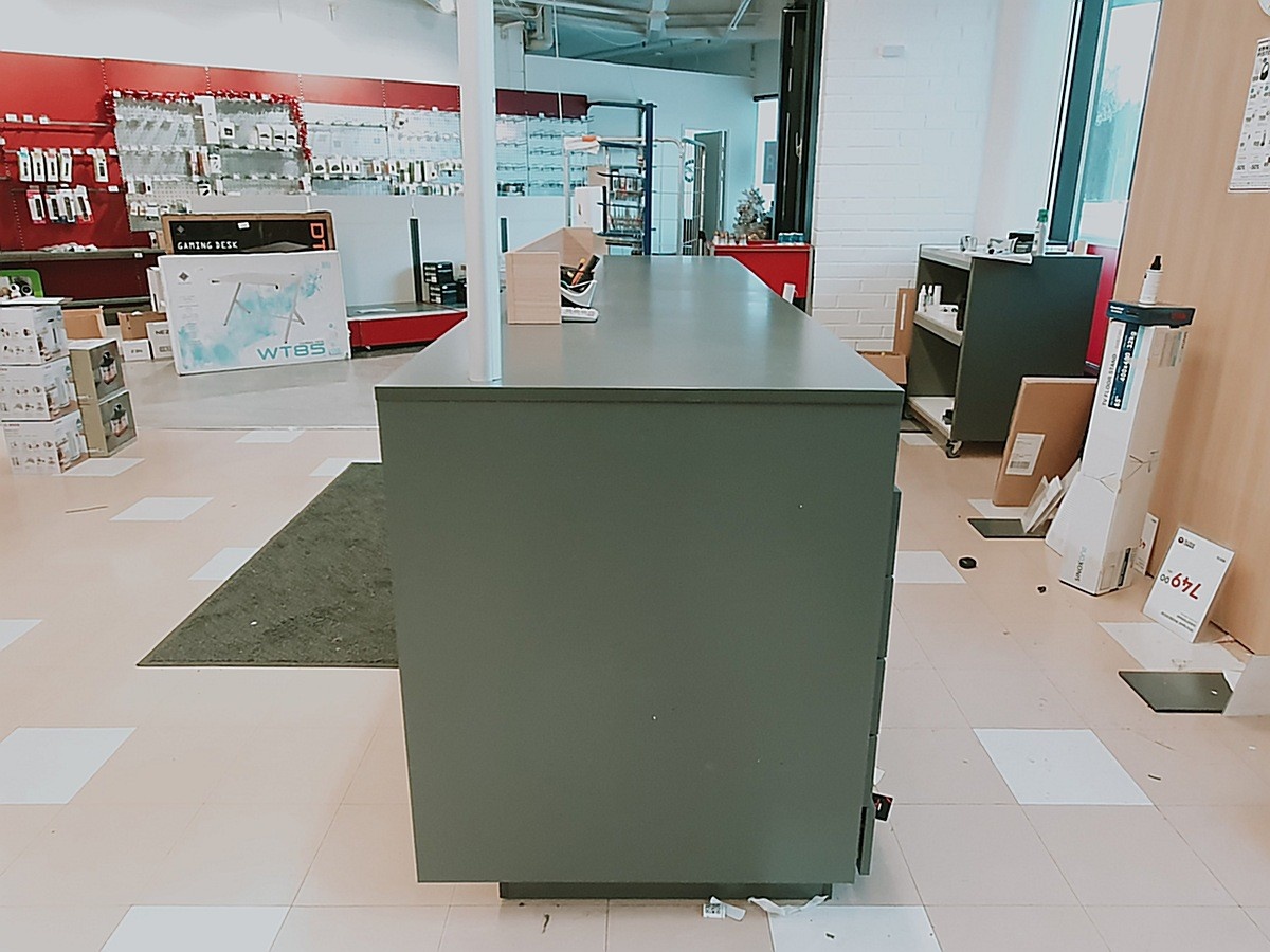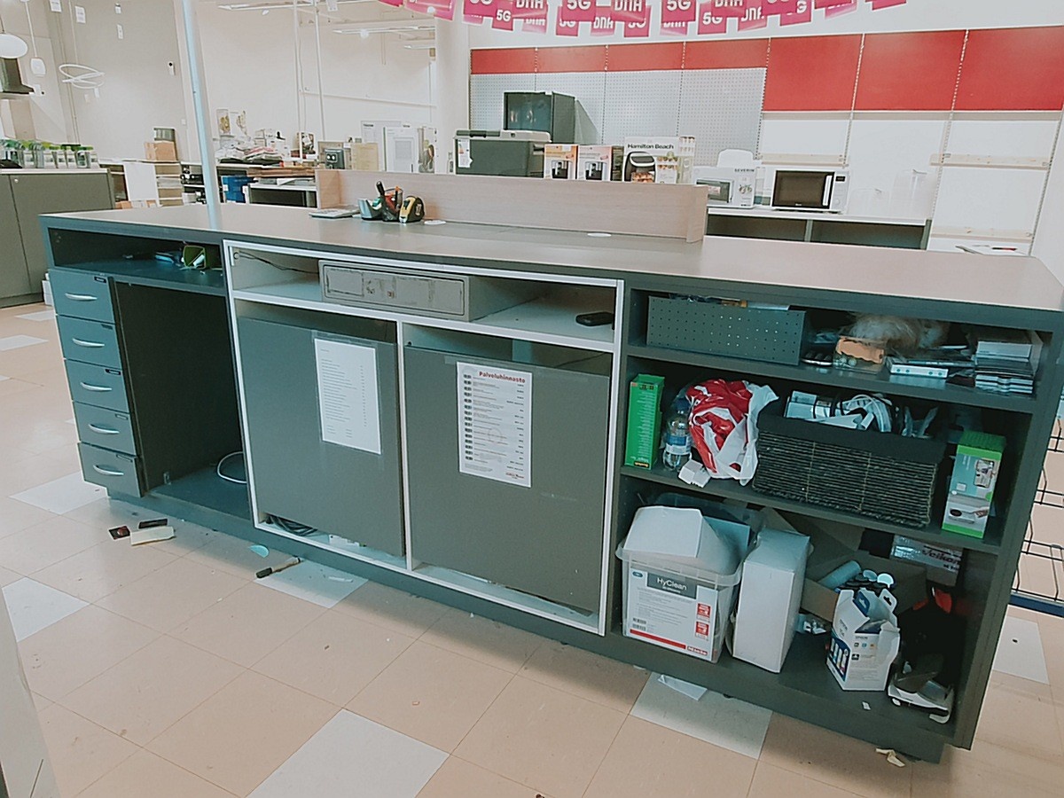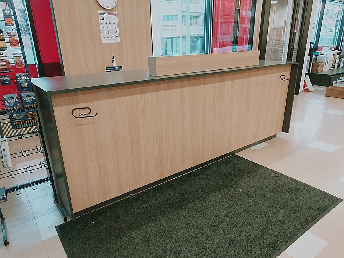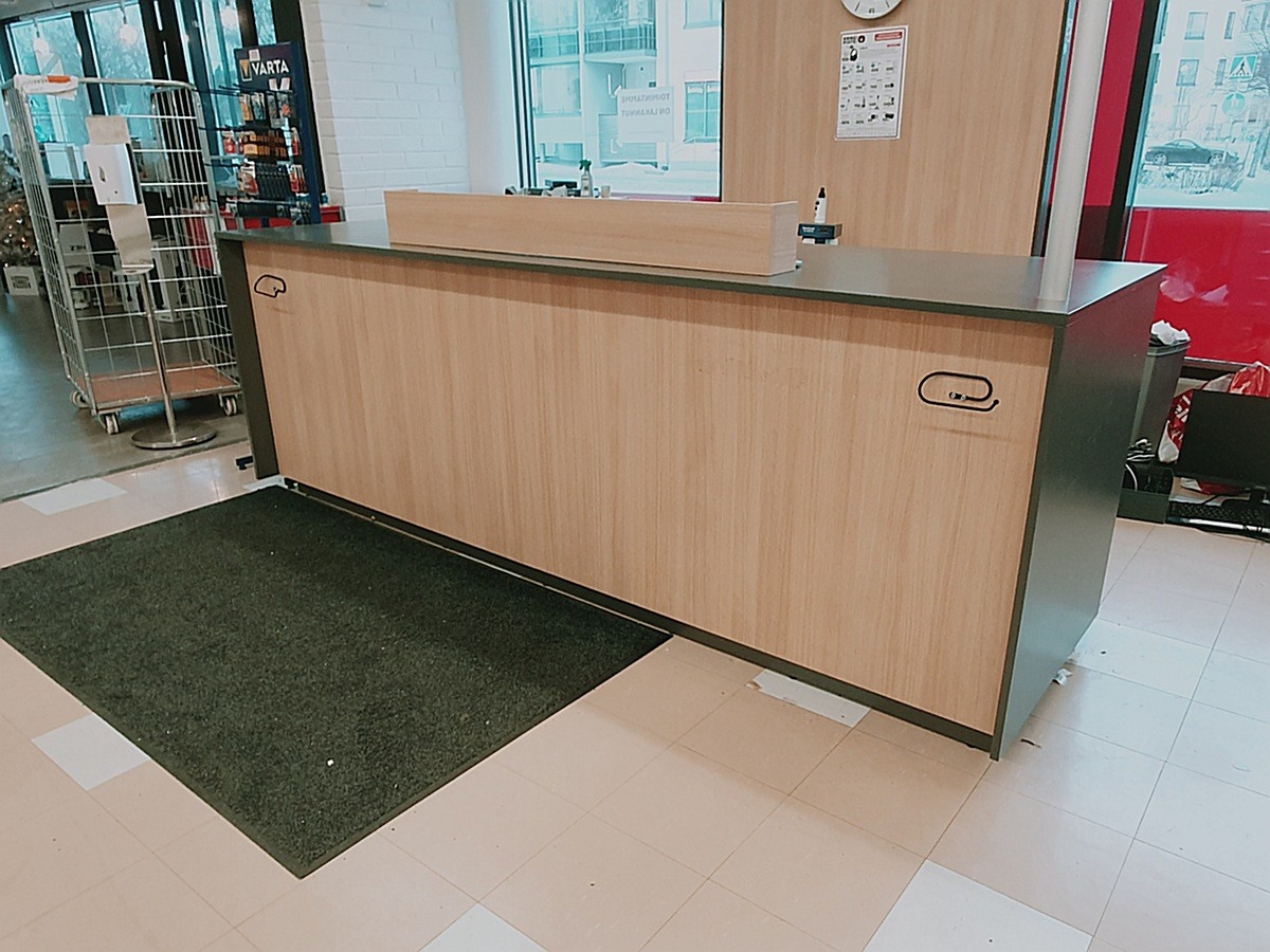 Myyntikohteet » 14. Apiankadun Konepistepojat Oy:n konkurssipesä (0967414-0), VALKEAKOSKI, 24.01.2026 » 267. Palvelu-/kassatiski 80x285cm sekä tilanjakajaseinä