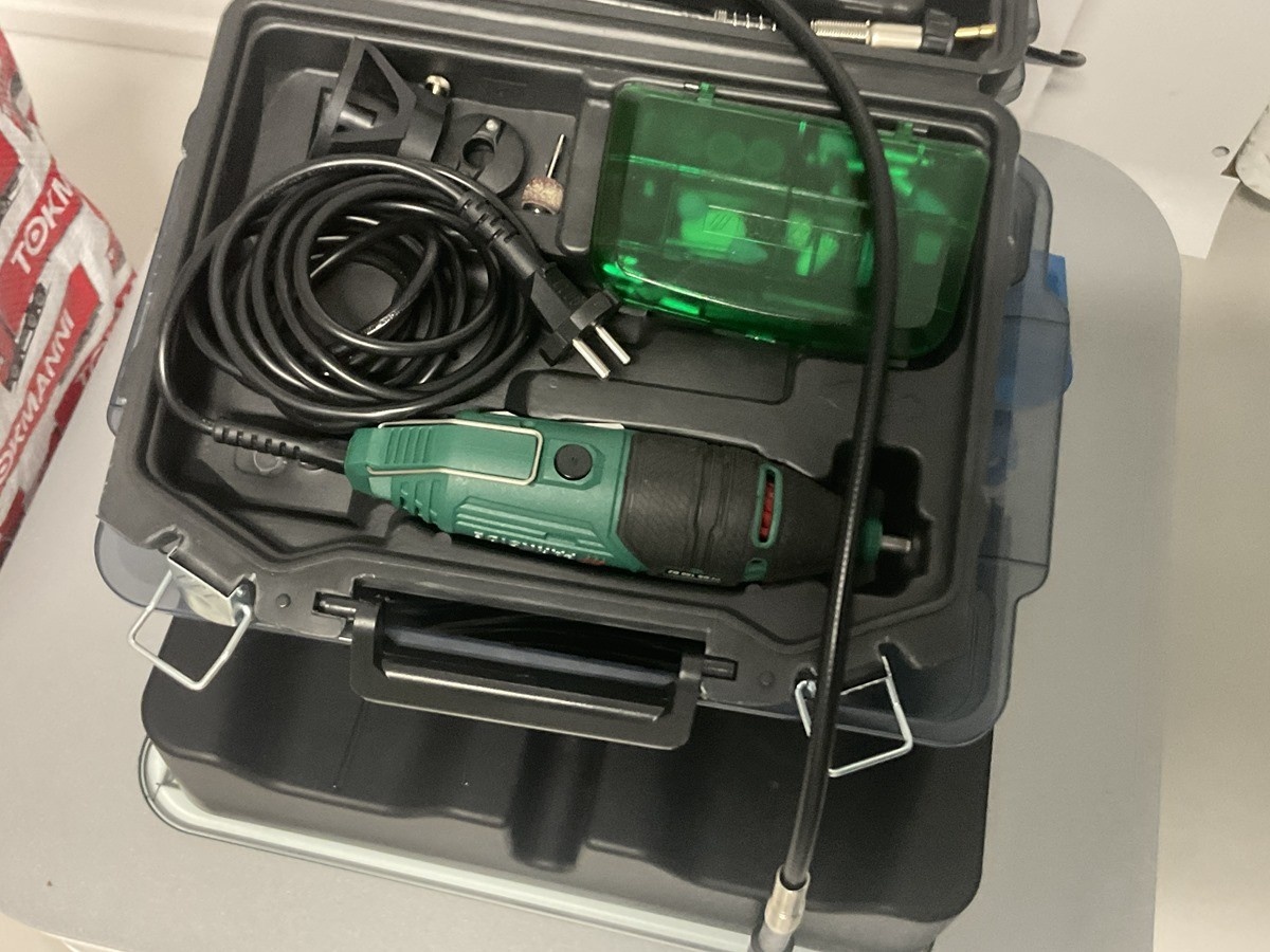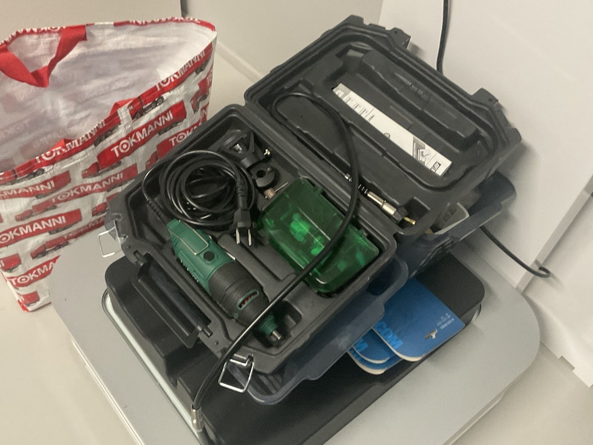 Mukana pohjallisia ja hiontakone ym.