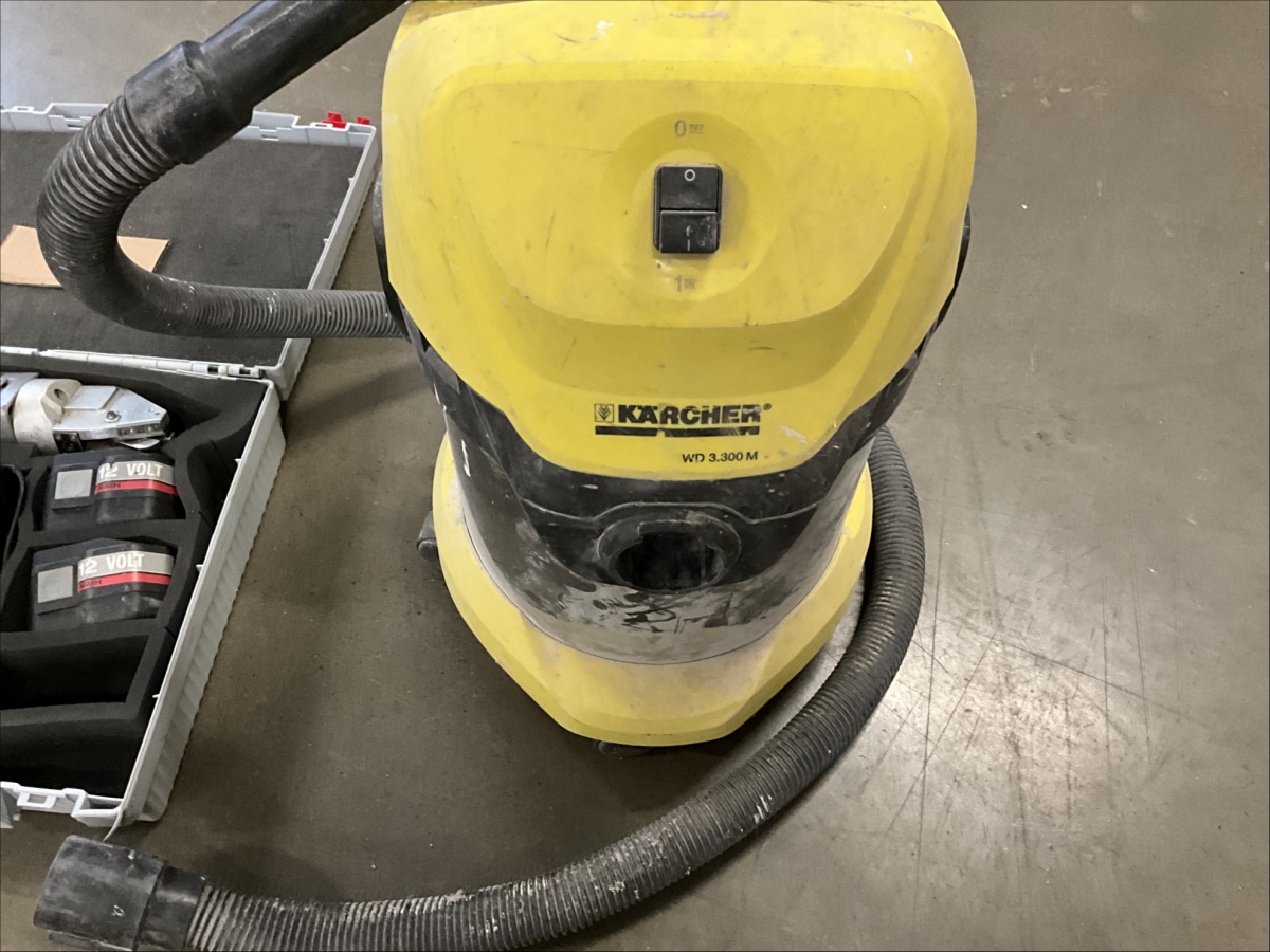 Myyntikohteet » Yritysjärjestelyn vuoksi myydään, YLÖJÄRVI, 30.01.2026 » 06. Märkä- ja kuivaimuri Kärcher WD 3.300 M, akkupeltileikkuri