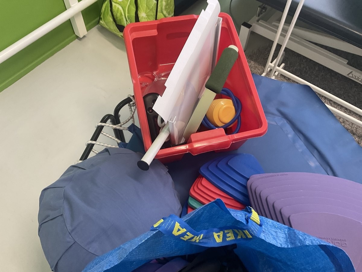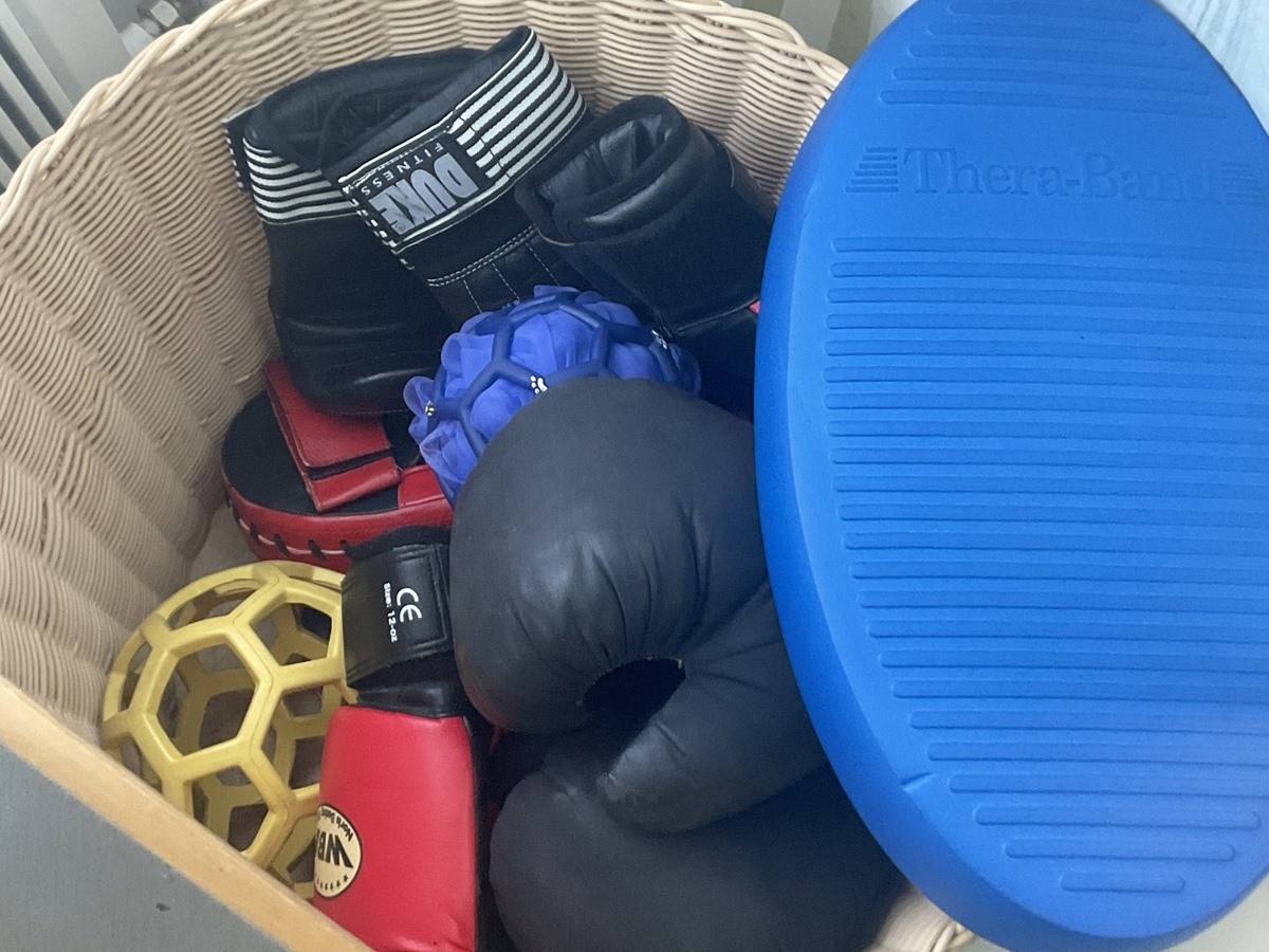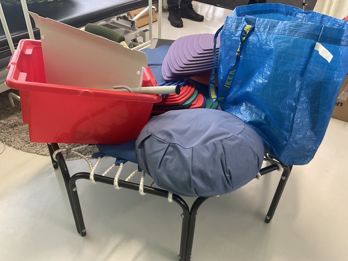 9. Korissa kuntoutukseen ja liikuntaan liittyviä välineitä