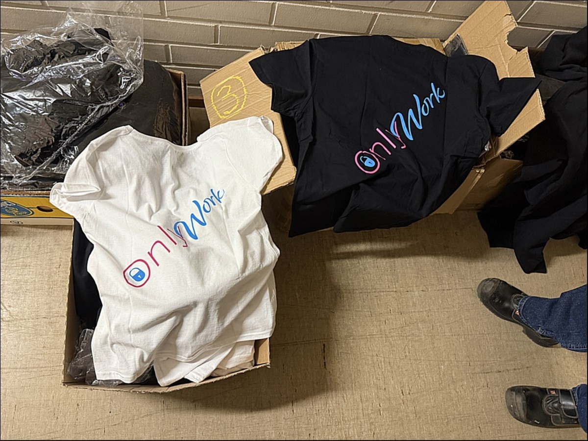 T-paidat (97 kappaletta) OnlyWork painatuksella.