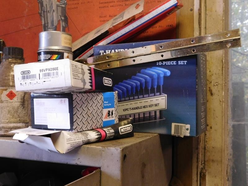 Sisältää mm. suodattimia, uusia valaisimia, pultteja, kemikaaleja, työkaluja, nivelakselin osia,