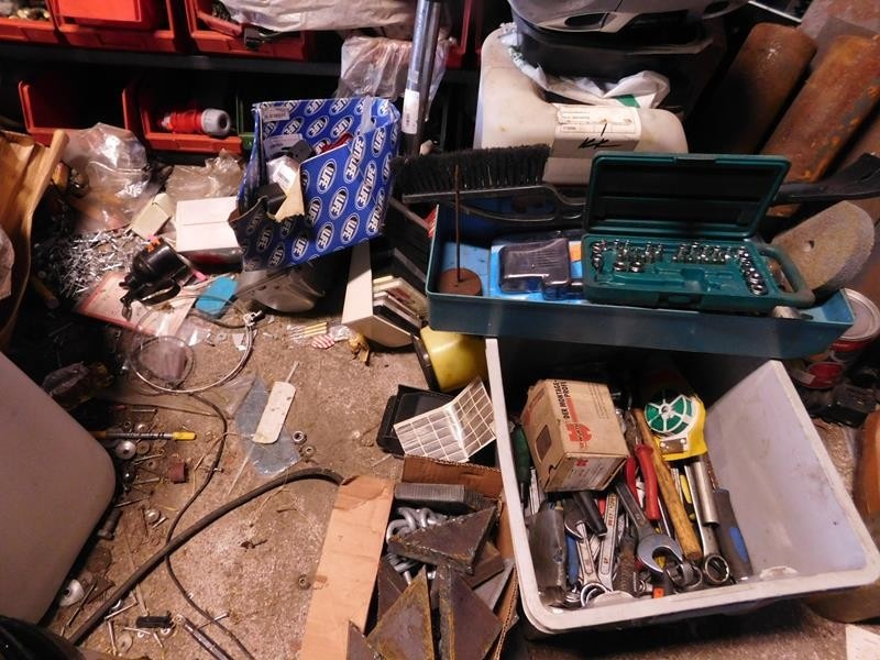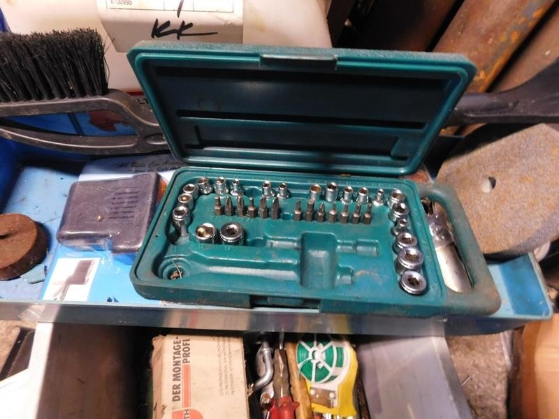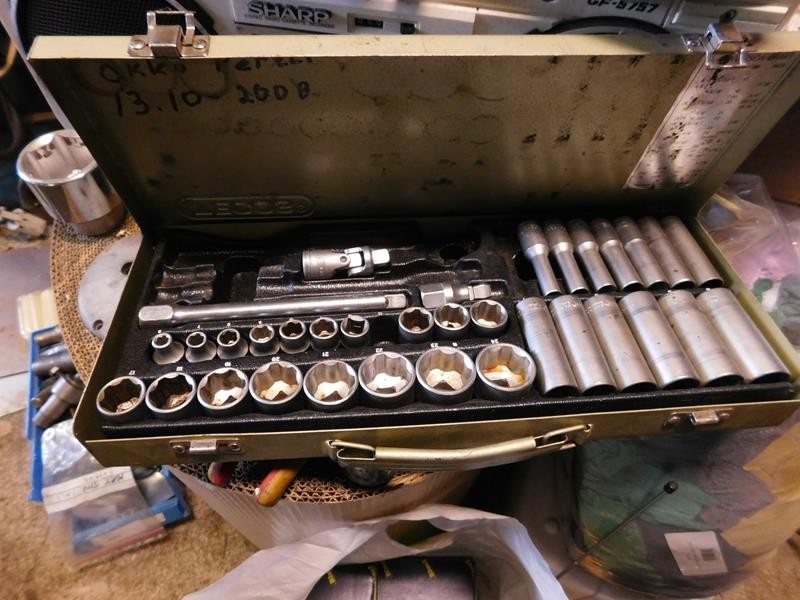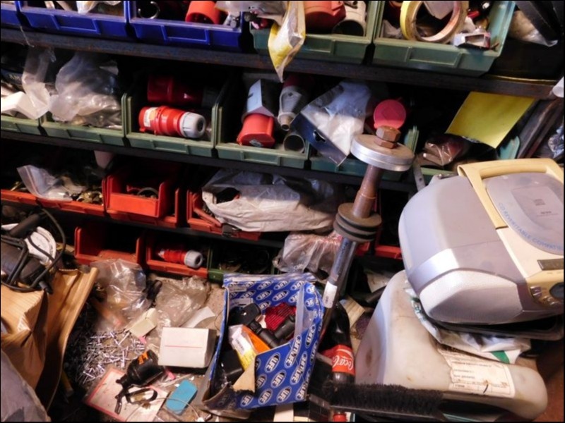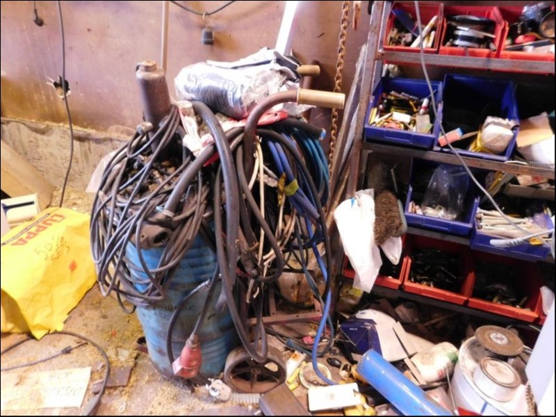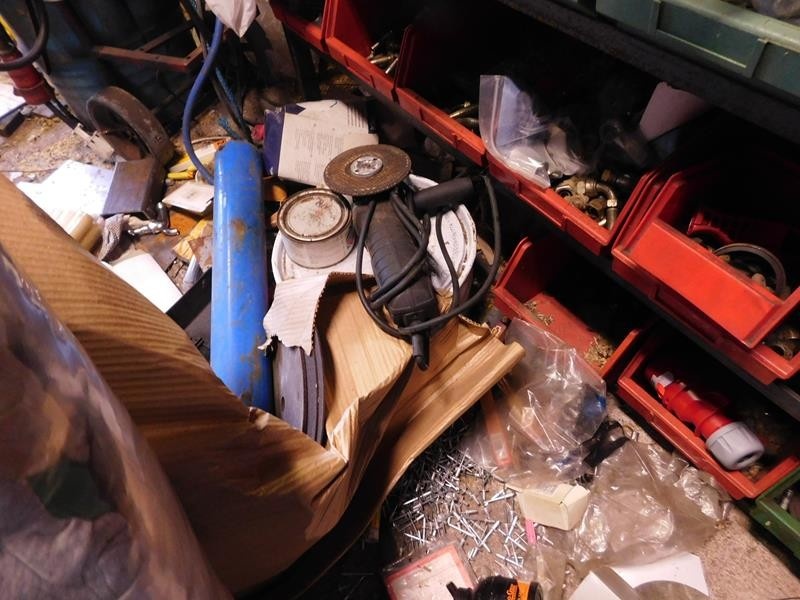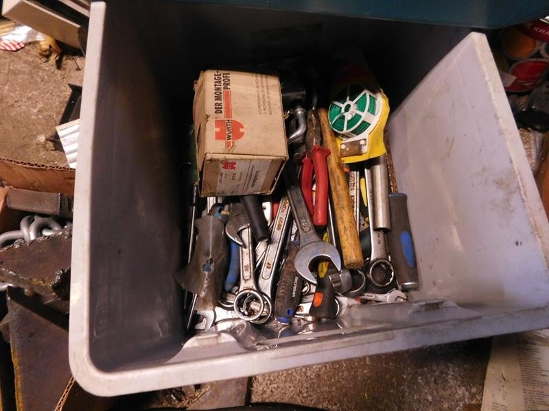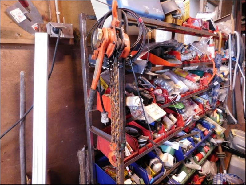 Sisältää mm. työkaluja, rasvapumppu, sähköosia, ketjutalja ym.