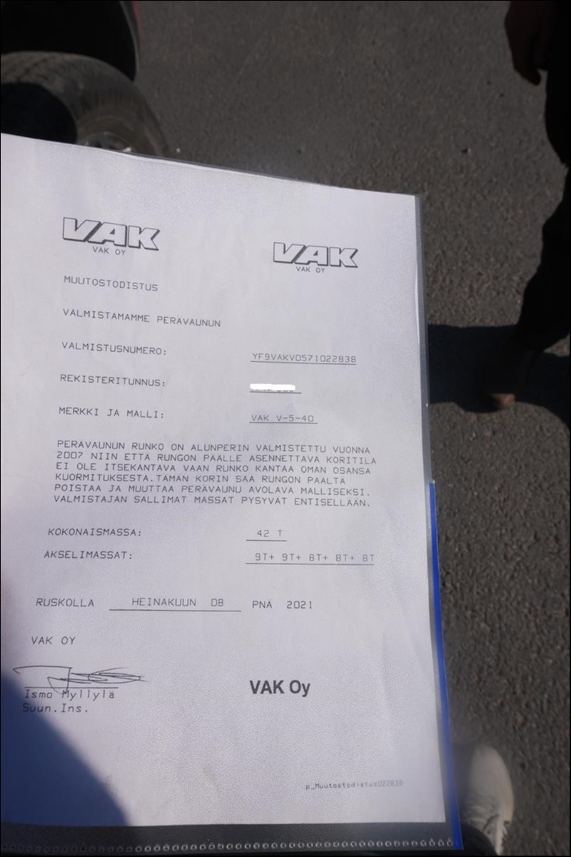 - mukana muutospaperit jos haluaa tehdä lavetin