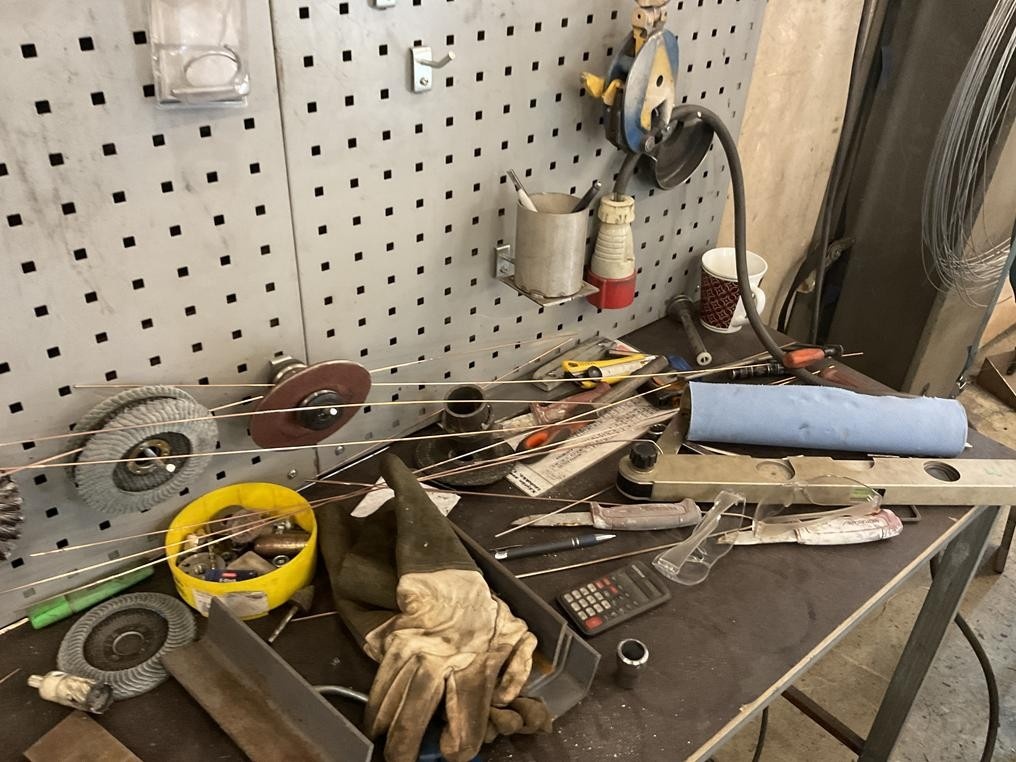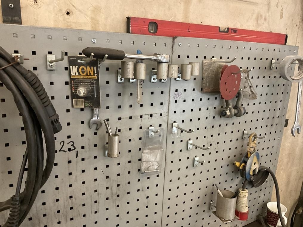 Myyntikohteet » 3. Tarmamet Oy:n konkurssipesä, LAITILA (2009070-1), 26.09.2025 » 23. Työpöytä reikälevyseinällä + työkalut / tarvikkeet