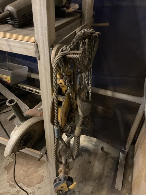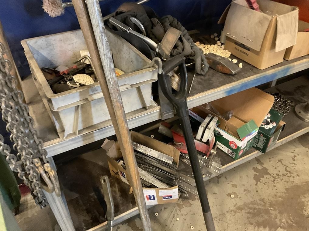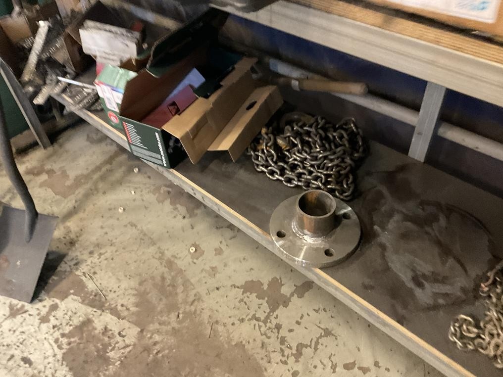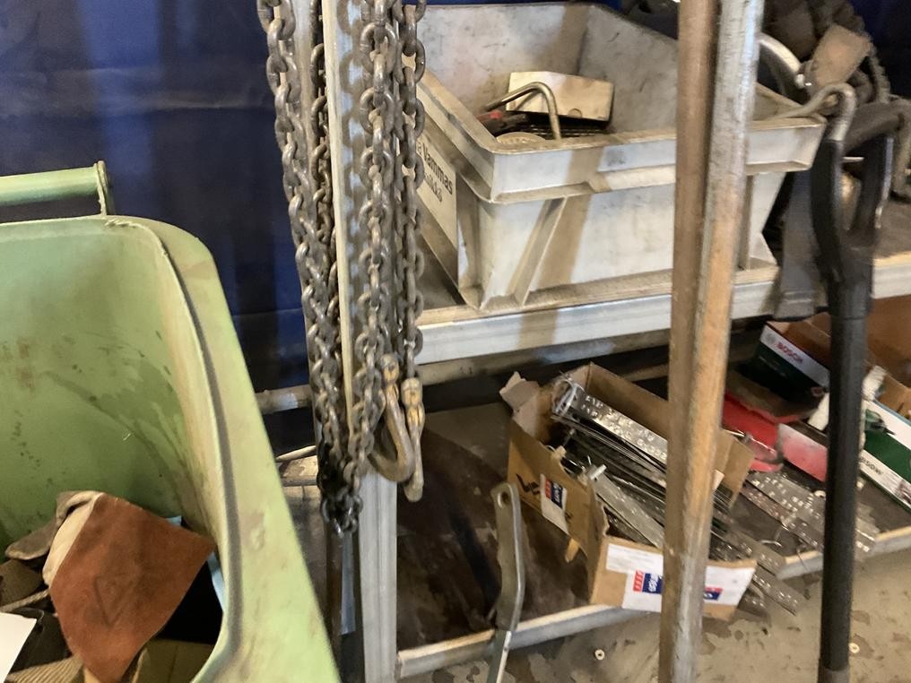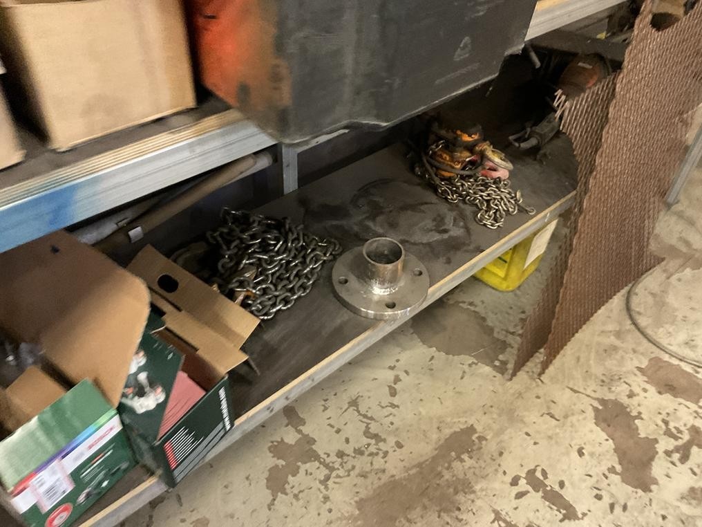 Myyntikohteet » 3. Tarmamet Oy:n konkurssipesä, LAITILA (2009070-1), 26.09.2025 » 24. 3-tasoinen hylly, hyllyllä olevat ketjut / työkalut