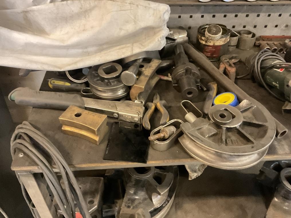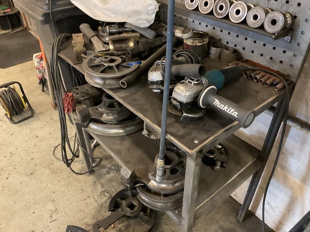 Putkentaivutuskone CBC UNI 70 C + pöytä reikälevyseinällä ja siinä olevat lisätarvikkeet