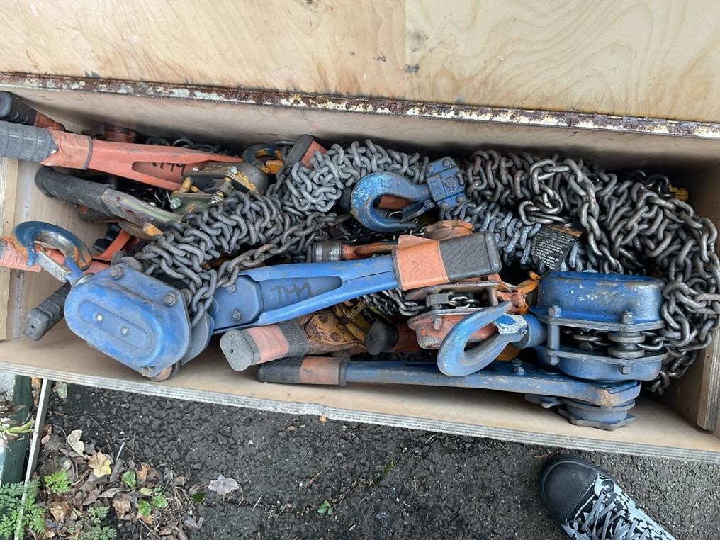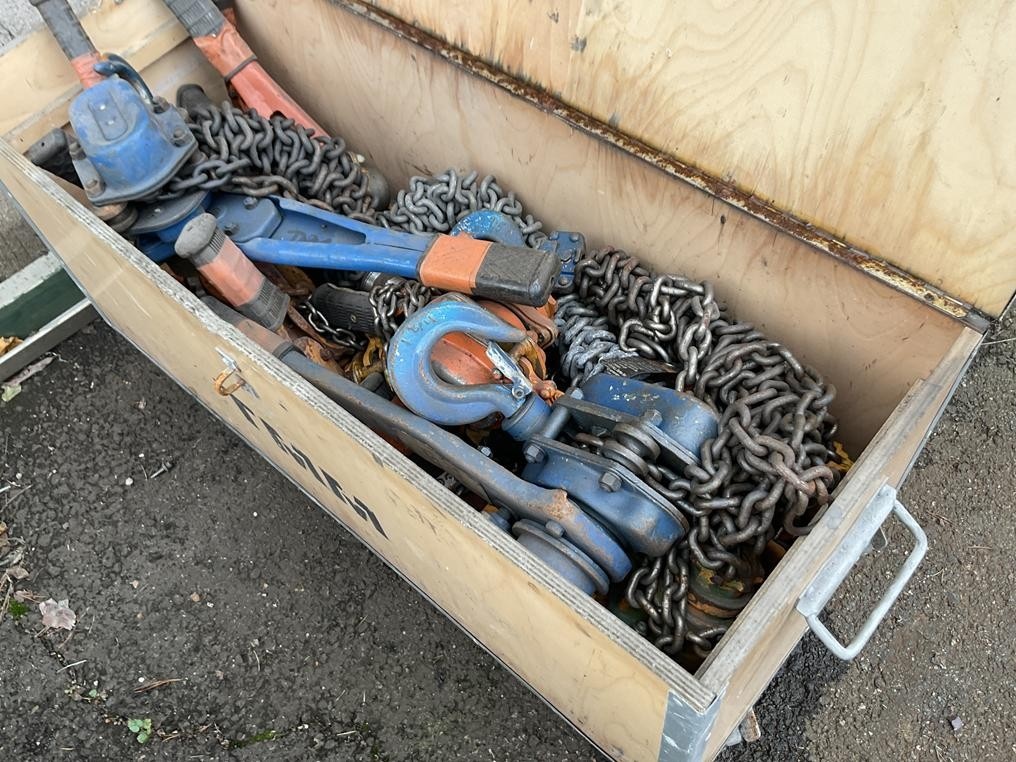 Myyntikohteet » 3. Tarmamet Oy:n konkurssipesä, LAITILA (2009070-1), 26.09.2025 » 39. Ketjutaljat 2 kpl, yhdessä laatikossa olevat käsityökalut, laatikot 3 kpl