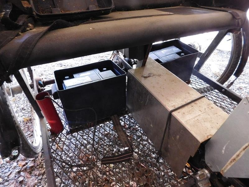Istuimen alla on kaksi akkua joiden kunnosta ei tietoa.