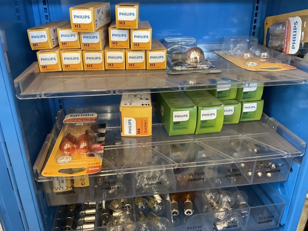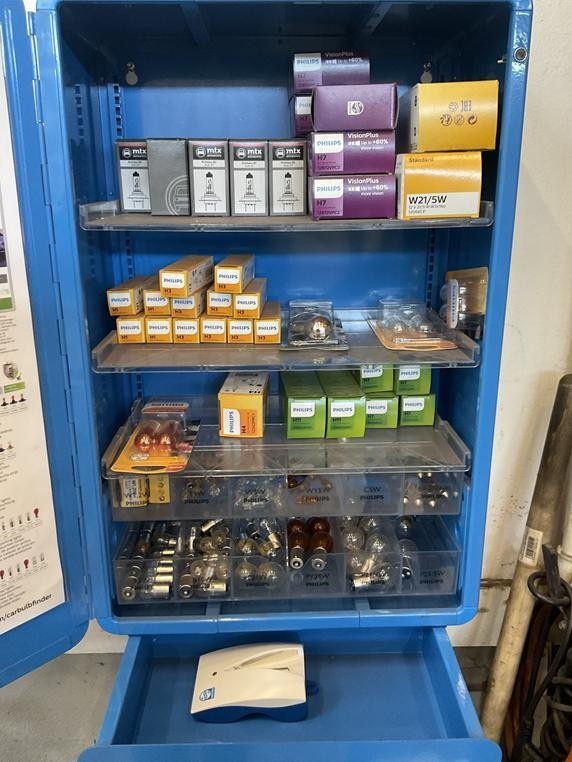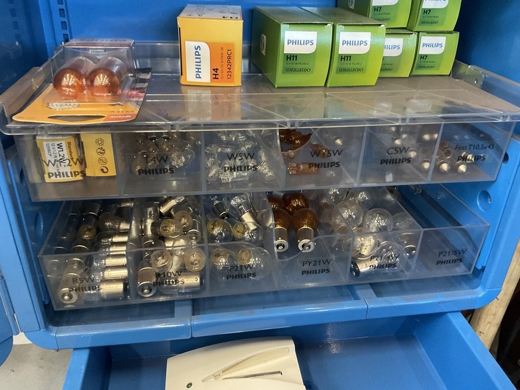 Myyntikohteet » 2. Autopalvelu Roka Oy:n konkurssipesä, ESPOO (3321807-3), 29.09.2025 » 11. Lokerikossa olevat kiinnitystarvikkeet, kaapissa olevat polttimot ym.