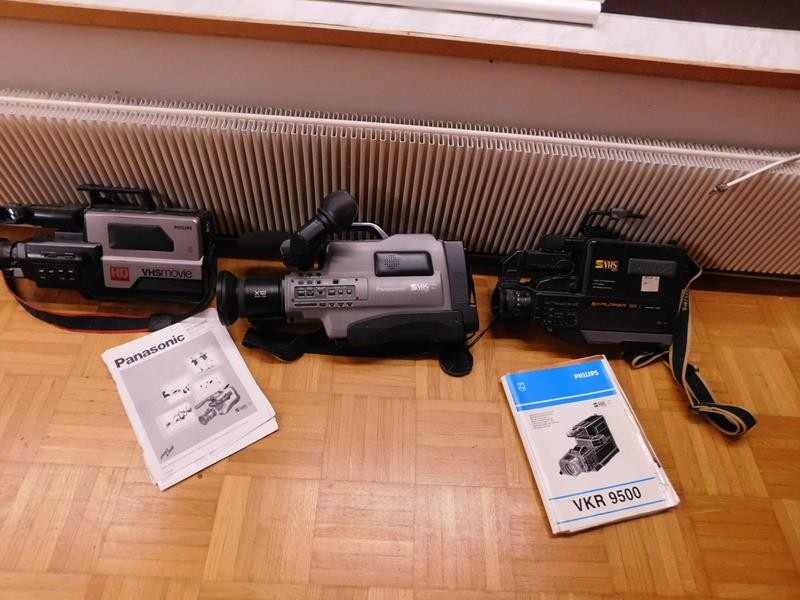 Erä vanhoja kelanauhureita sekä 3 kpl videokameroita.
