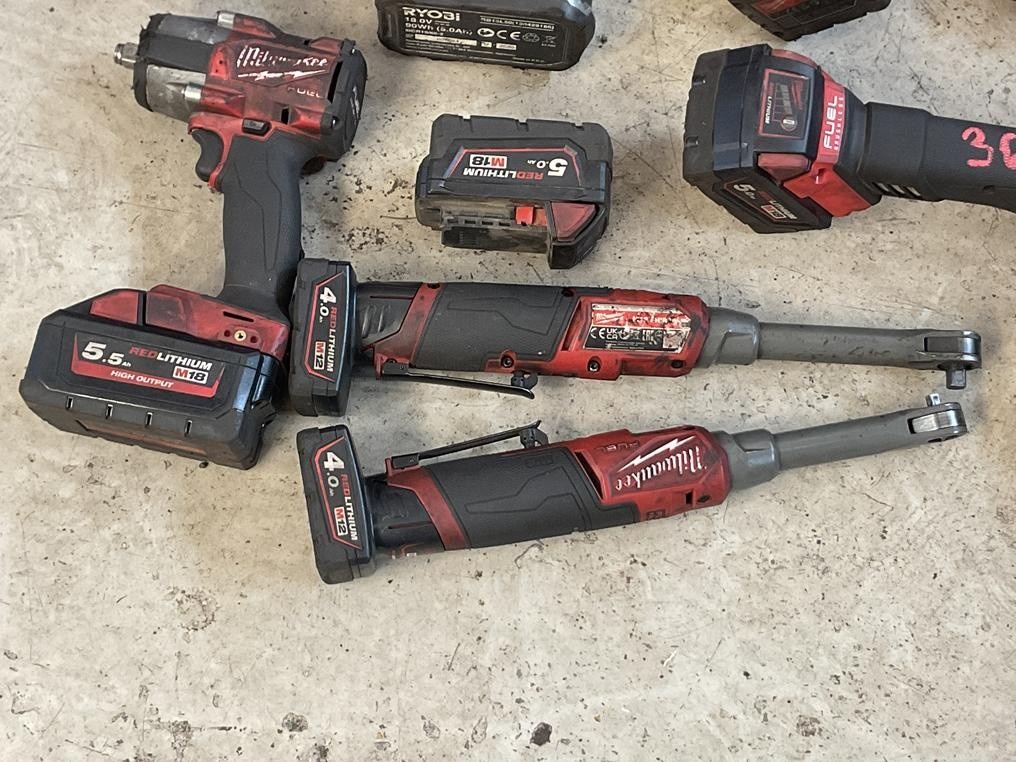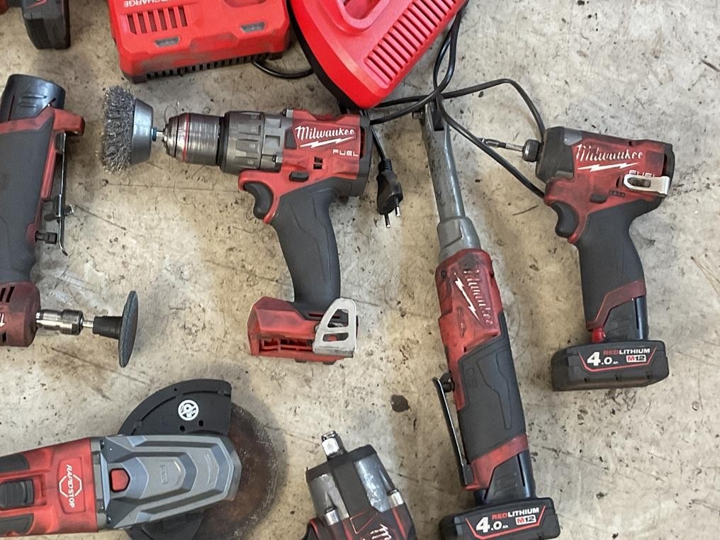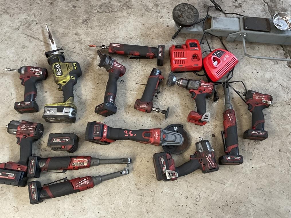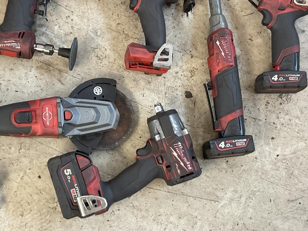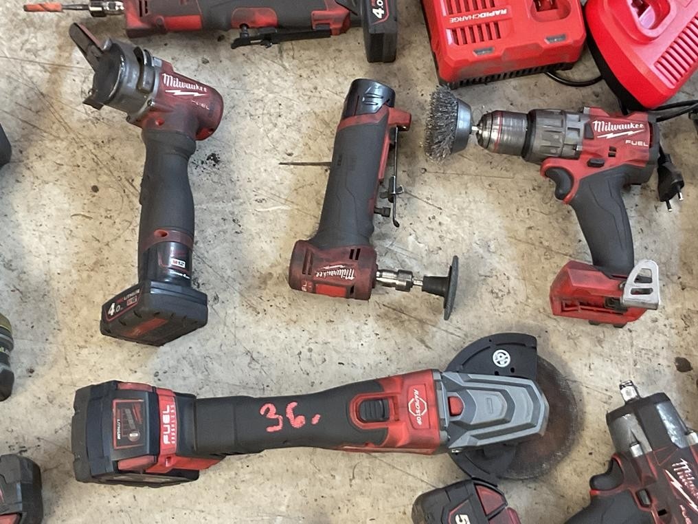Myyntikohteet » 3. Autopalvelu Roka Oy:n konkurssipesä, ESPOO (3321807-3), 29.09.2025 » 36. Akkutyökalut Milwaukee 12 kappaletta, akkulaturit 2 kappaletta, akut 10 kappaletta