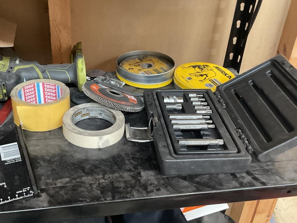 Myyntikohteet » 3. Autopalvelu Roka Oy:n konkurssipesä, ESPOO (3321807-3), 29.09.2025 » 39. Tarvikehylly yhteensä 2-hyllyvälikköä, hyllyssä olevat työkalut ja tarvikkeet
