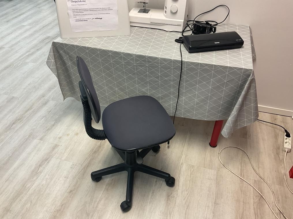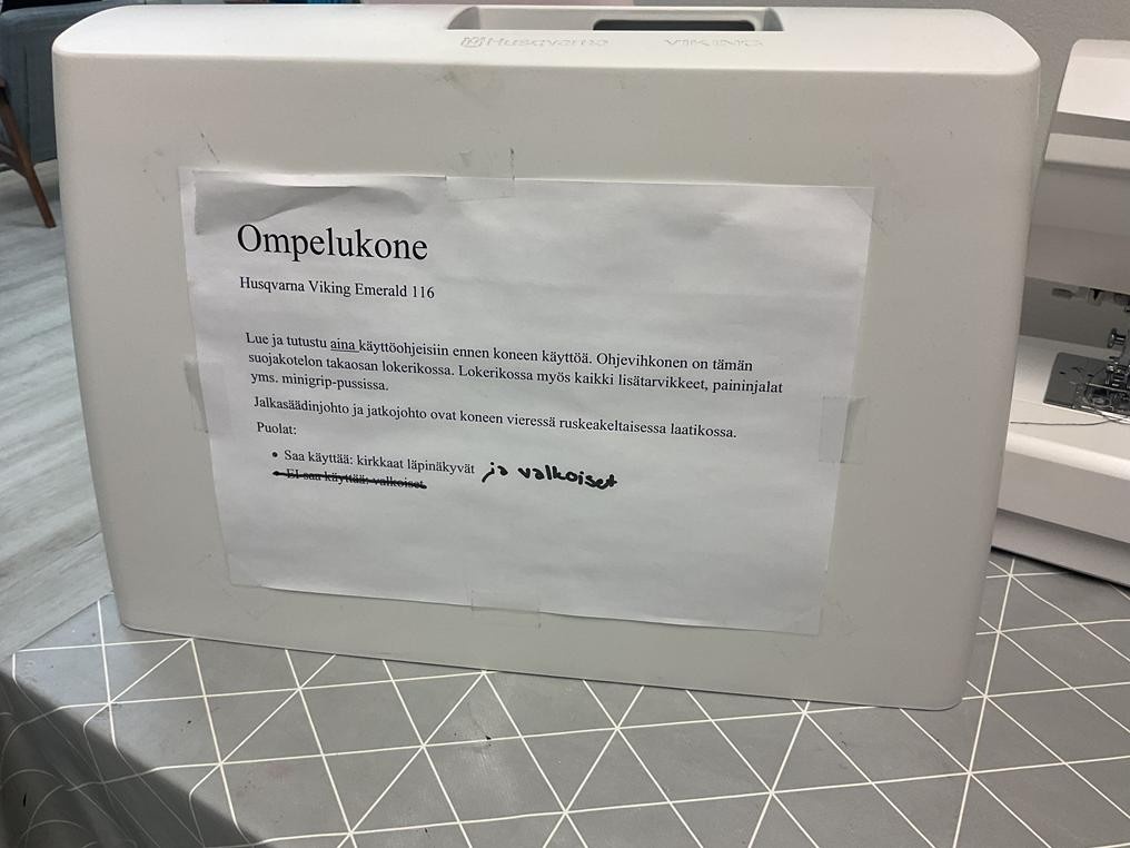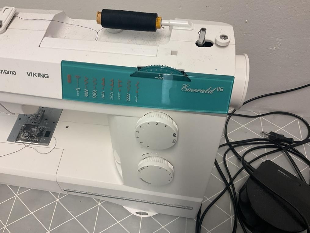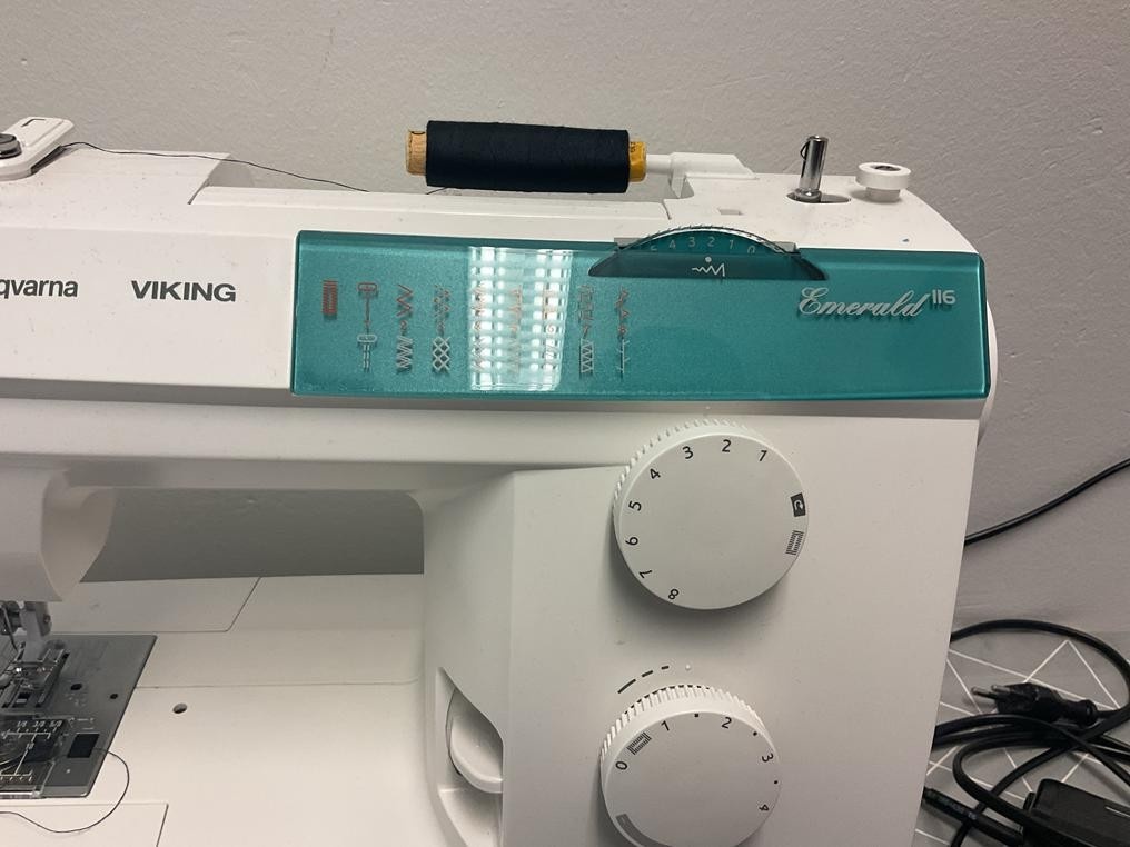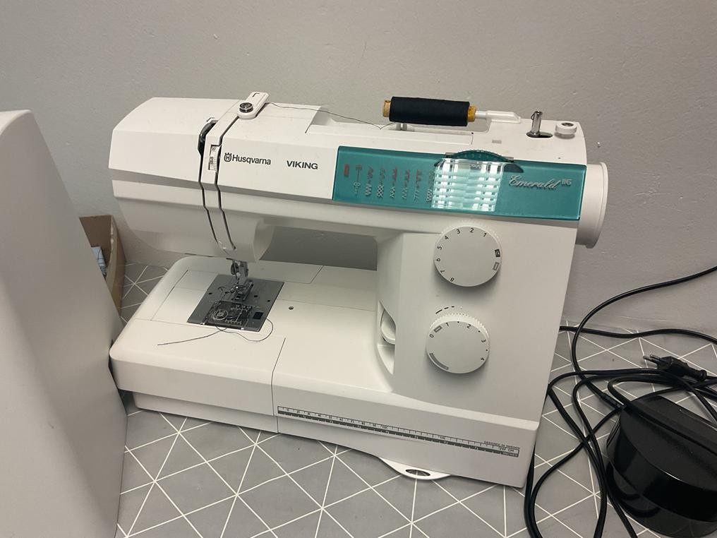Myyntikohteet » 1. Monipalvelukeskus Tsemppi ry:n konkurssipesä, TURKU (1756671-3) HUOM! PÄÄTTYY MA (6.10), 03.10.2025 » A04. Ompelukone Husqvarna Viking Emerald 116, toimistotuoli, pöytä