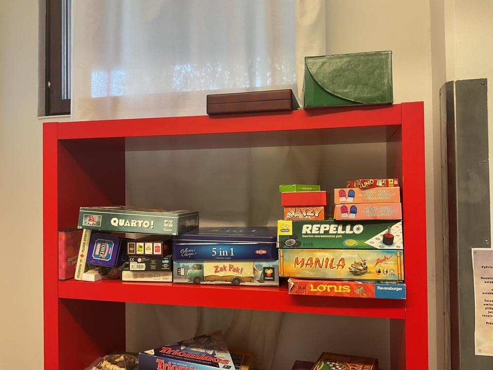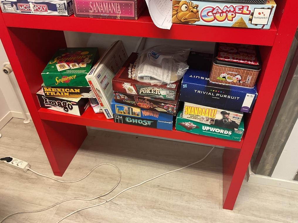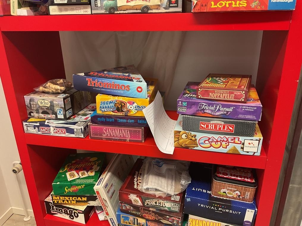 Myyntikohteet » 1. Monipalvelukeskus Tsemppi ry:n konkurssipesä, TURKU (1756671-3) HUOM! PÄÄTTYY MA (6.10), 03.10.2025 » A05. Punainen hylly, hyllyssä olevat lautapelit