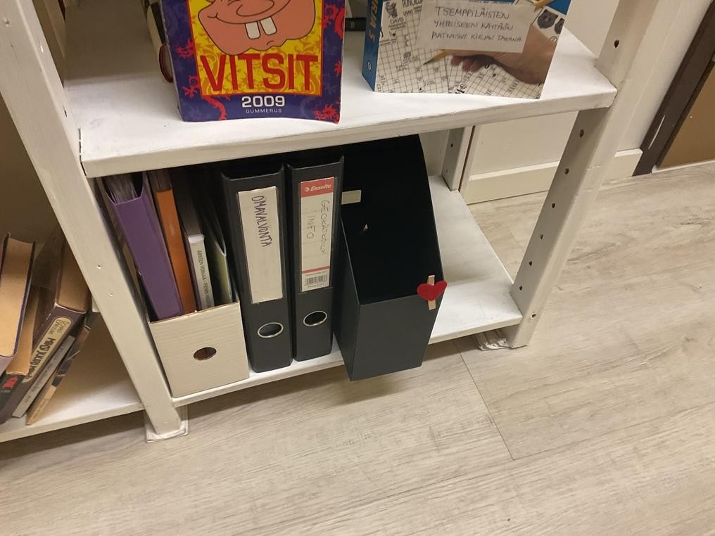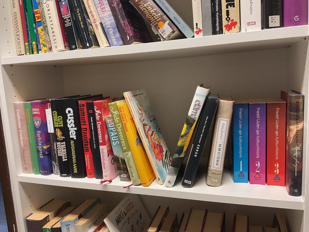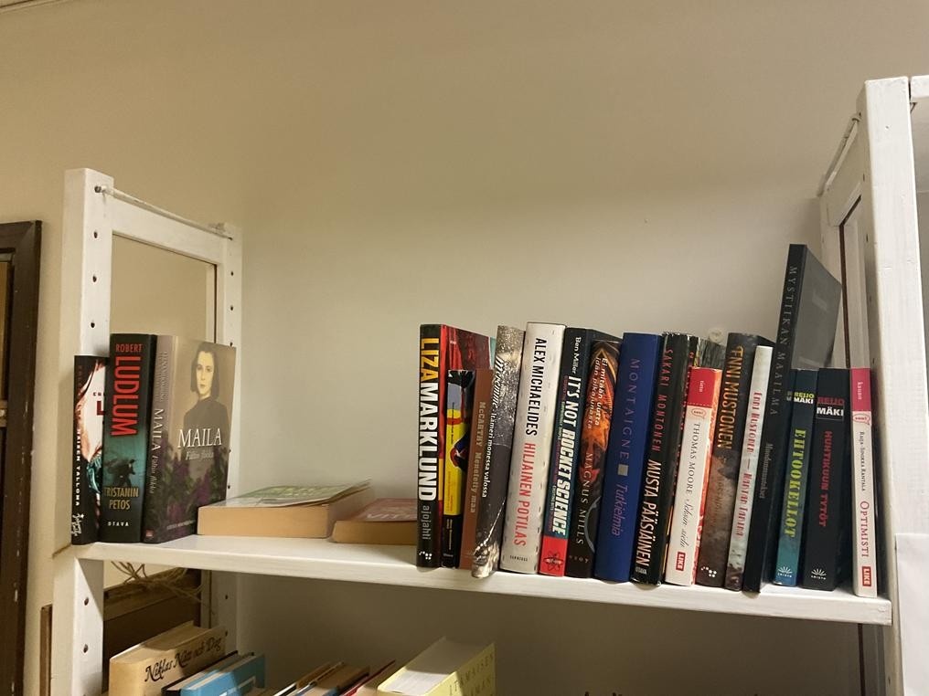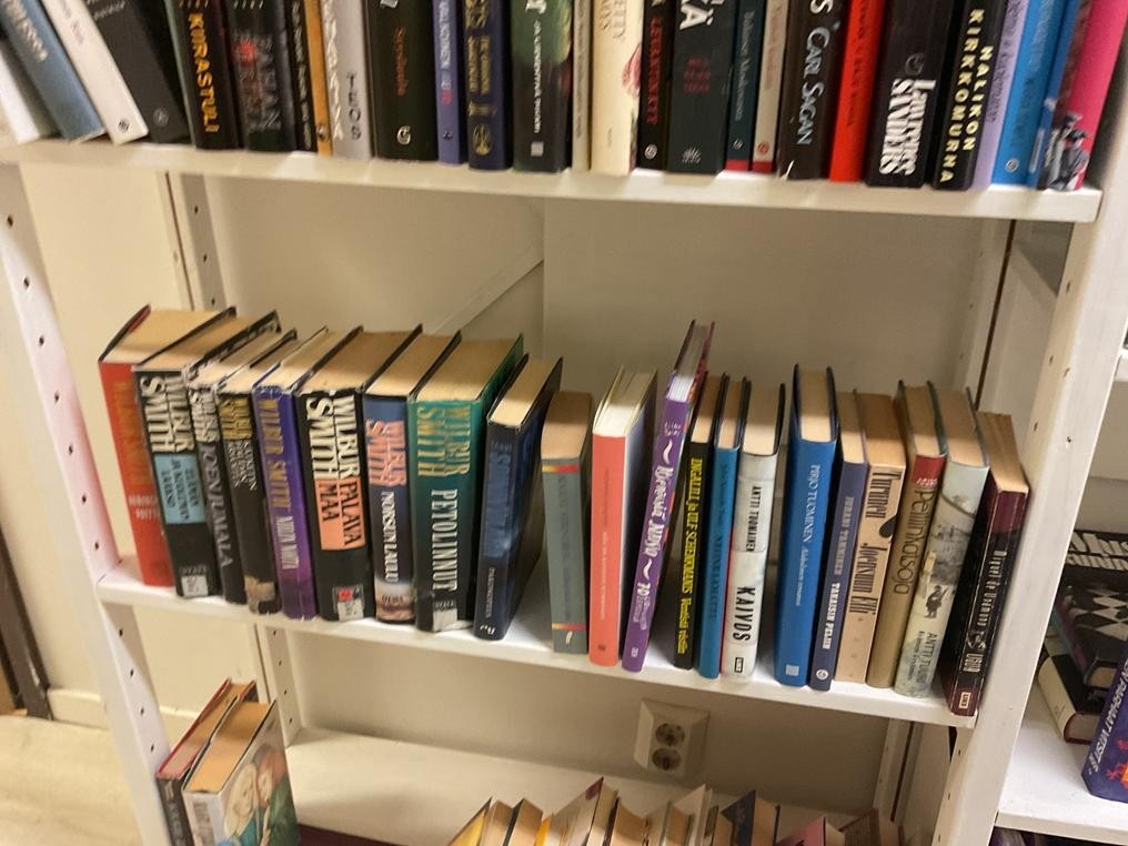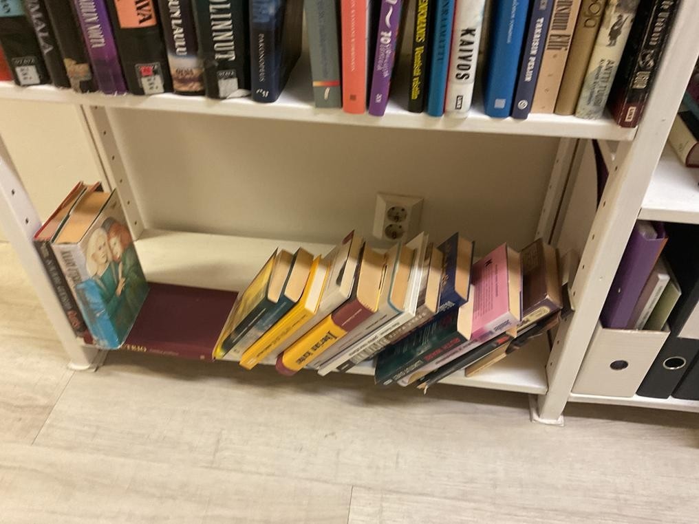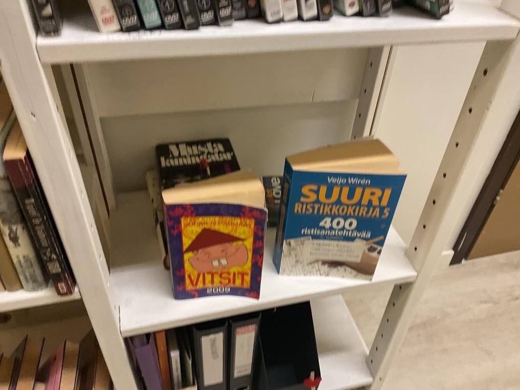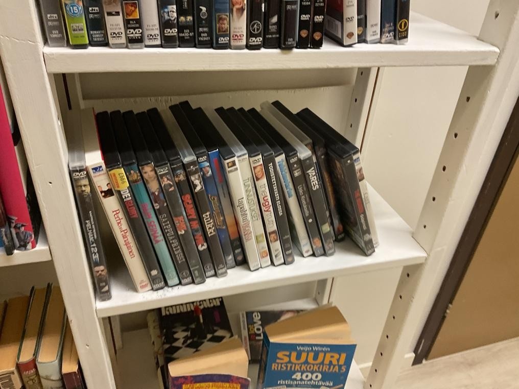 Myyntikohteet » 1. Monipalvelukeskus Tsemppi ry:n konkurssipesä, TURKU (1756671-3) HUOM! PÄÄTTYY MA (6.10), 03.10.2025 » A09. Kolme hyllyä ja pöytä ja niissä olevat kirjat, DVD:t ym.